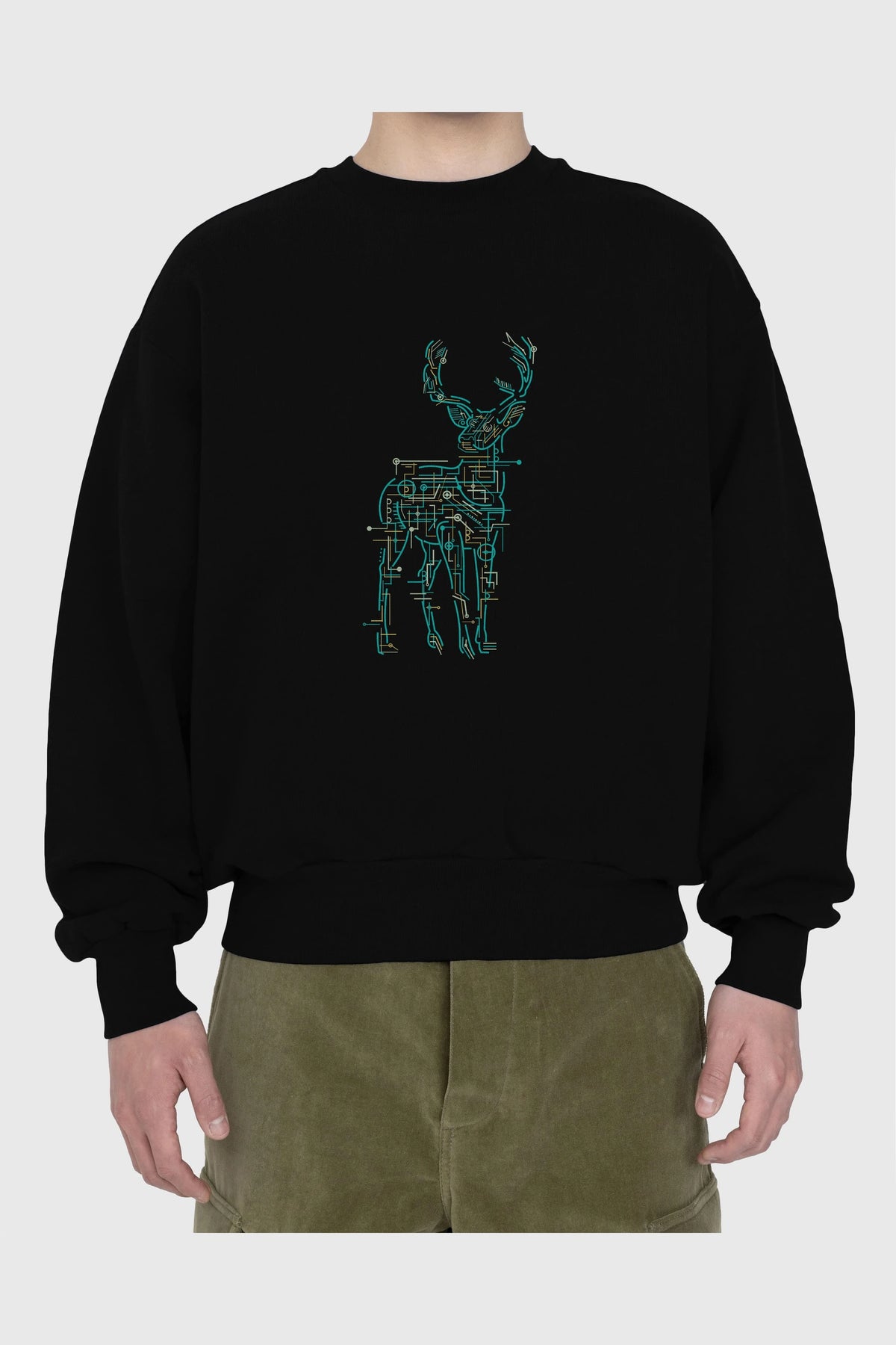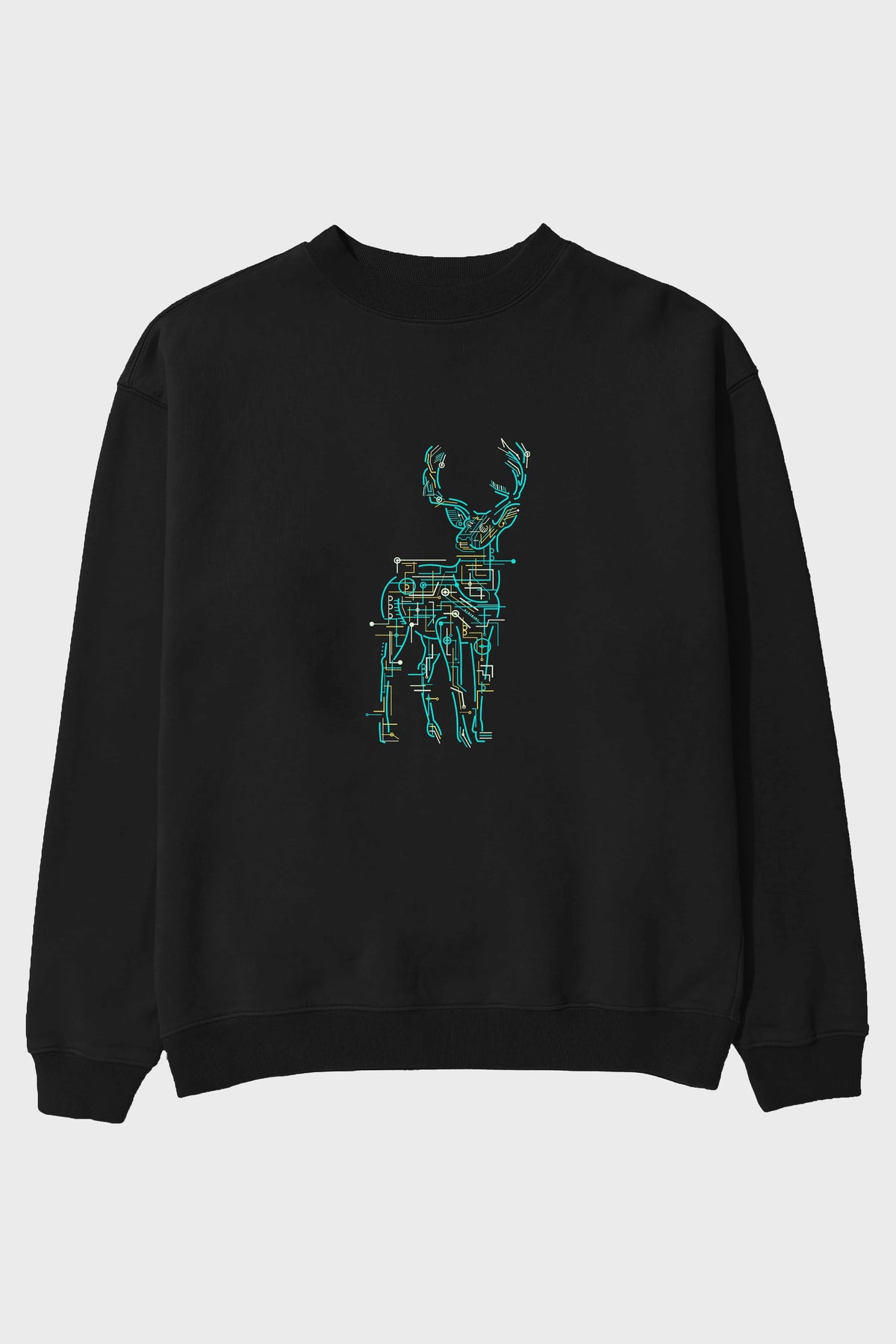 Electric Deer Ön Baskılı Oversize Sweatshirt Erkek Kadın Unisex