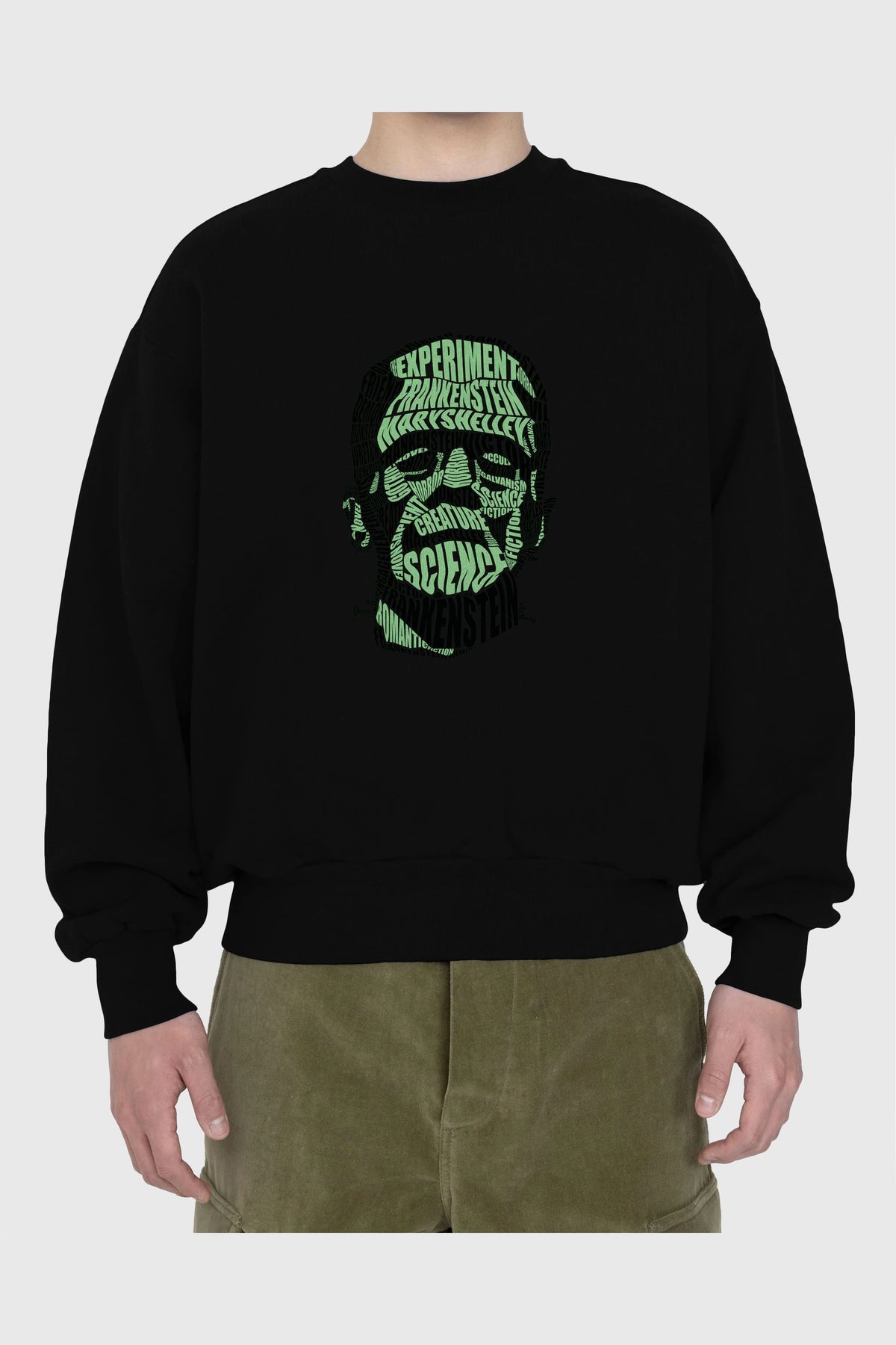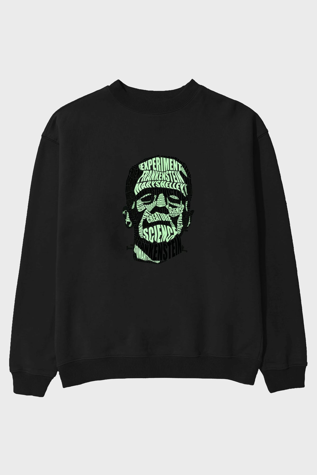 Frankenstein Calligram Ön Baskılı Oversize Sweatshirt Erkek Kadın Unisex