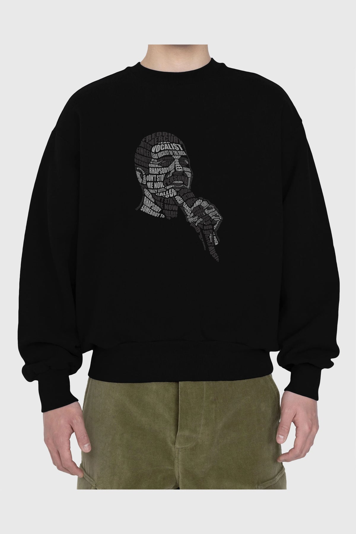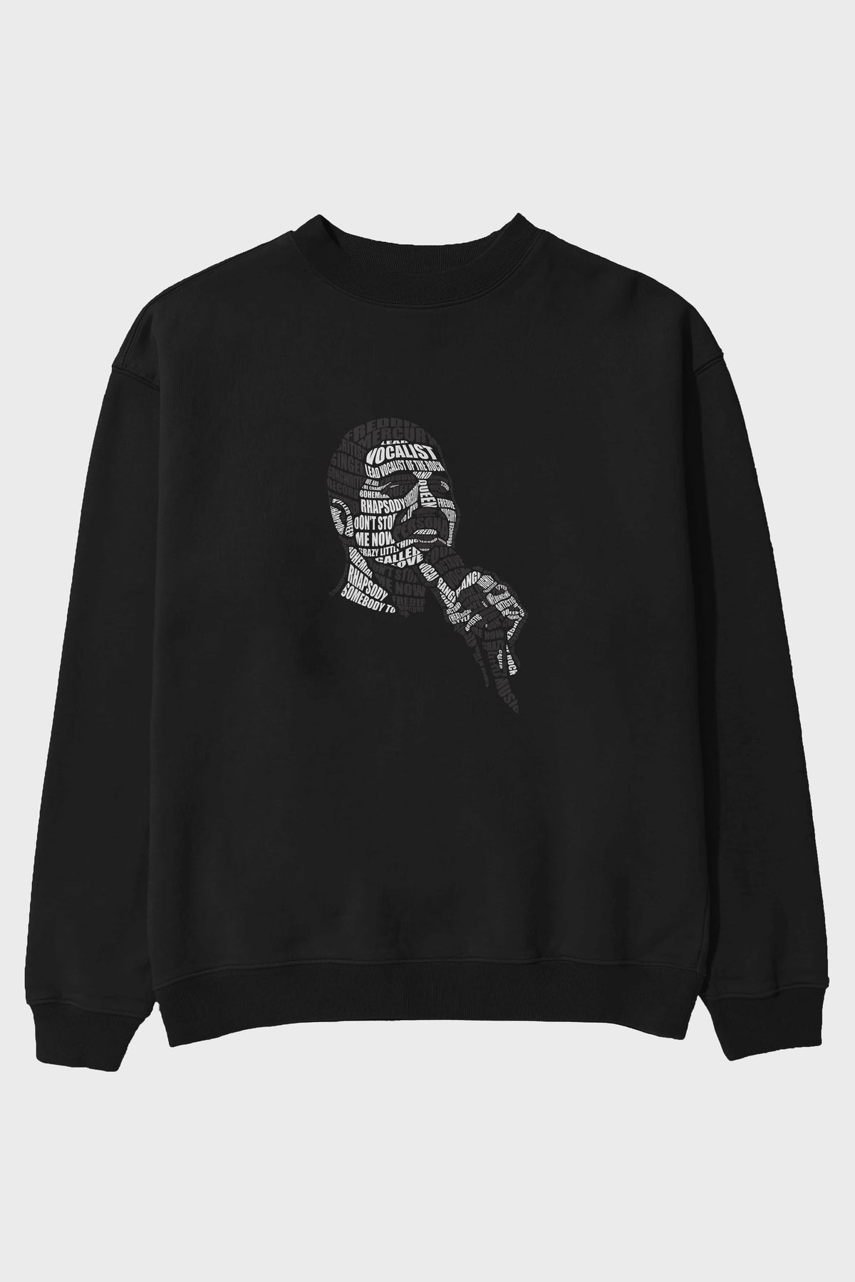 Freddy Mercuri Calligram Ön Baskılı Oversize Sweatshirt Erkek Kadın Unisex