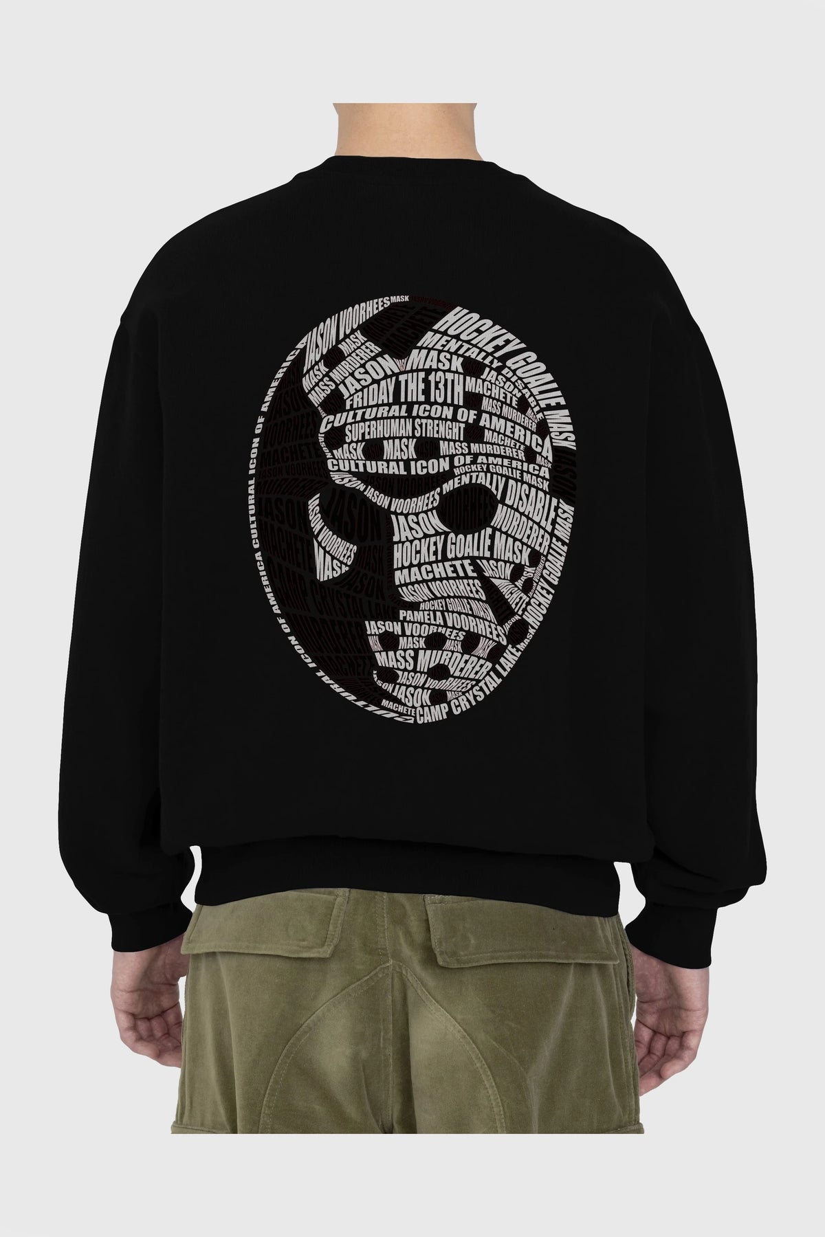 Jason Voorhees Calligram Arka Baskılı Oversize Sweatshirt Erkek Kadın Unisex