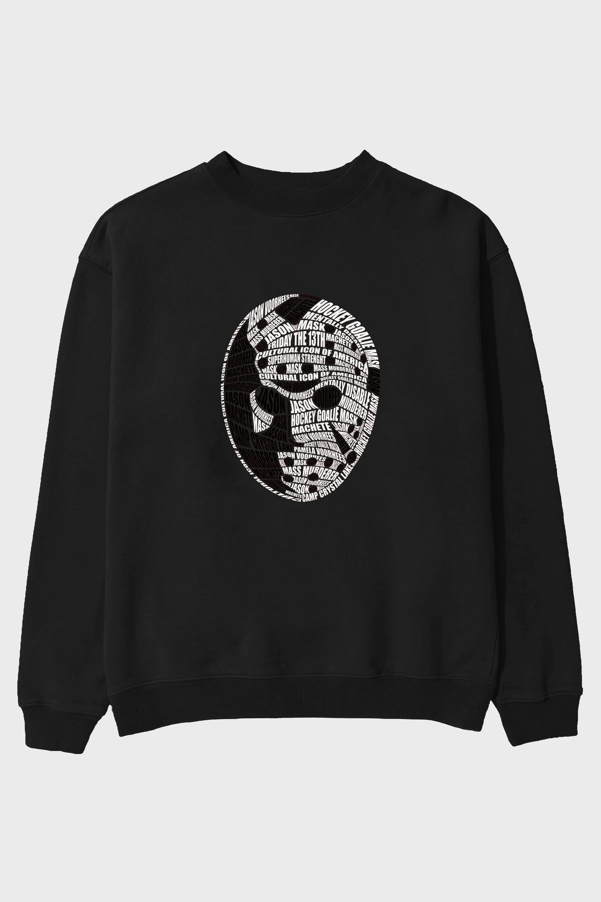 Jason Voorhees Calligram Ön Baskılı Oversize Sweatshirt Erkek Kadın Unisex