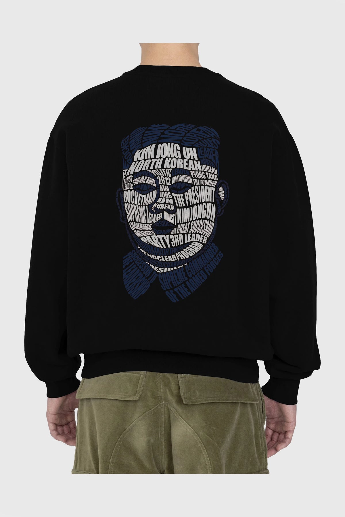 Kim Jong Un Calligram Arka Baskılı Oversize Sweatshirt Erkek Kadın Unisex