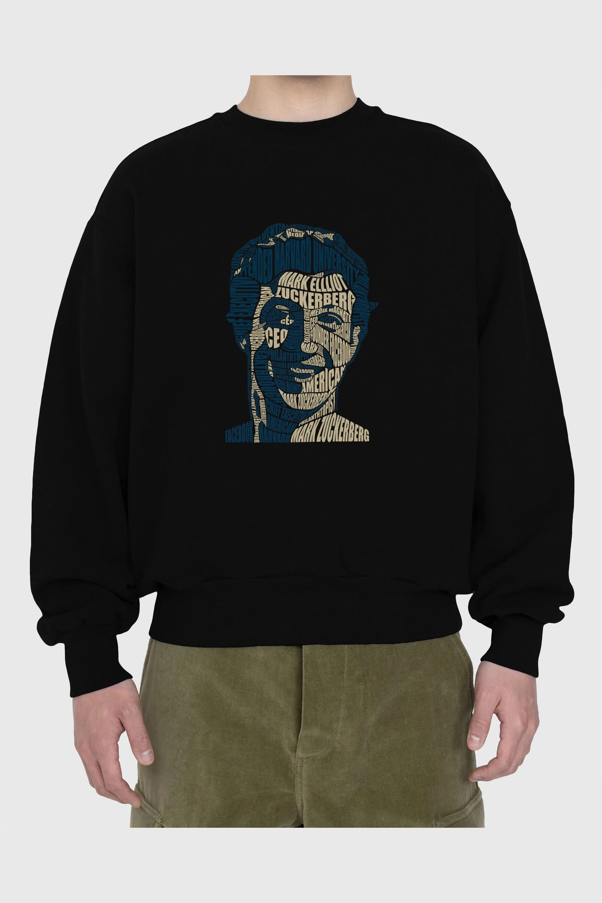 Mark Zuckerberg Calligram Ön Baskılı Oversize Sweatshirt Erkek Kadın Unisex