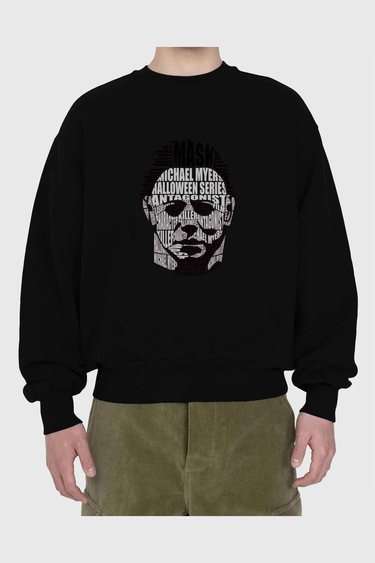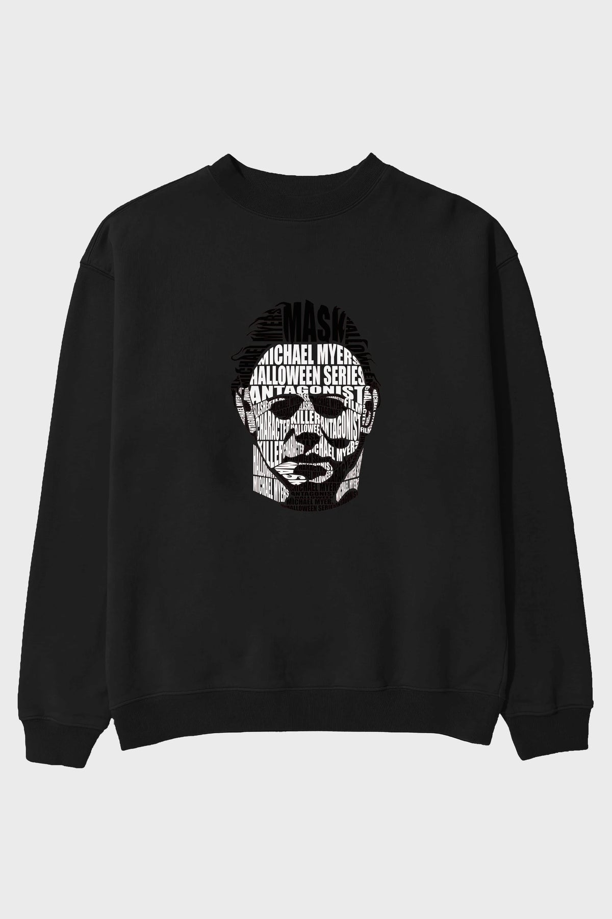 Michael Myers Calligram Ön Baskılı Oversize Sweatshirt Erkek Kadın Unisex