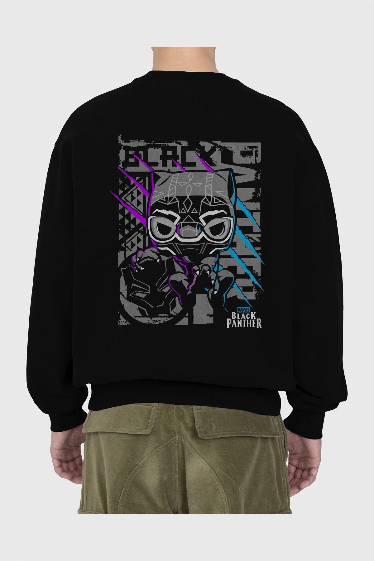 Black Panther Arka Baskılı Oversize Sweatshirt Erkek Kadın Unisex