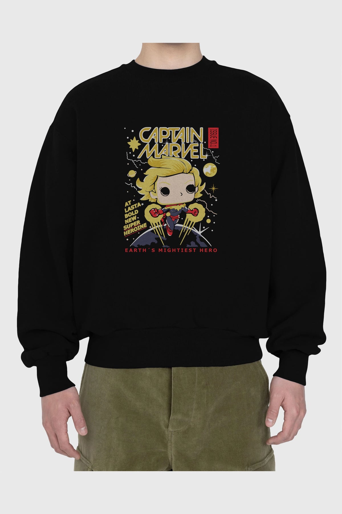 Captain Marvel Ön Baskılı Oversize Sweatshirt Erkek Kadın Unisex