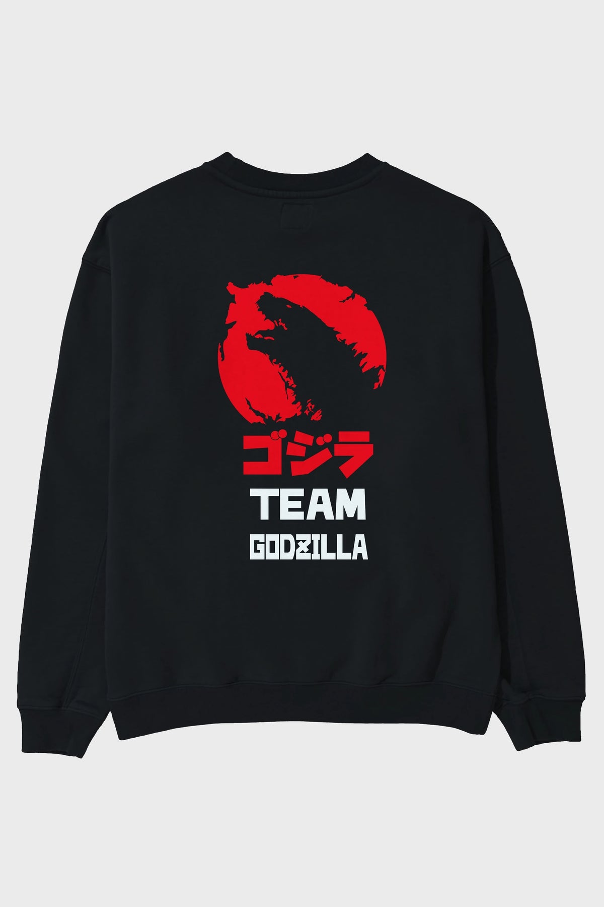 Team Godzilla Arka Baskılı Oversize Sweatshirt Erkek Kadın Unisex