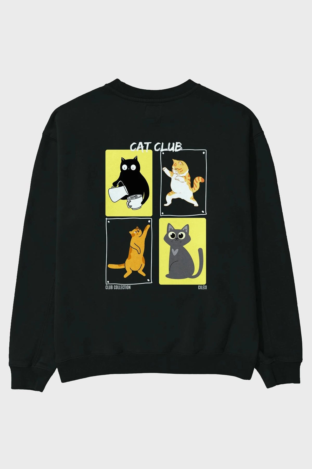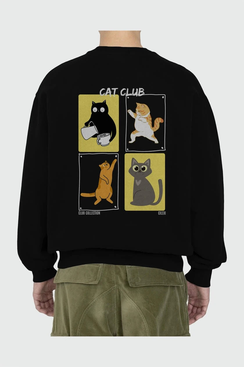 Cat Club Arka Baskılı Oversize Sweatshirt Erkek Kadın Unisex