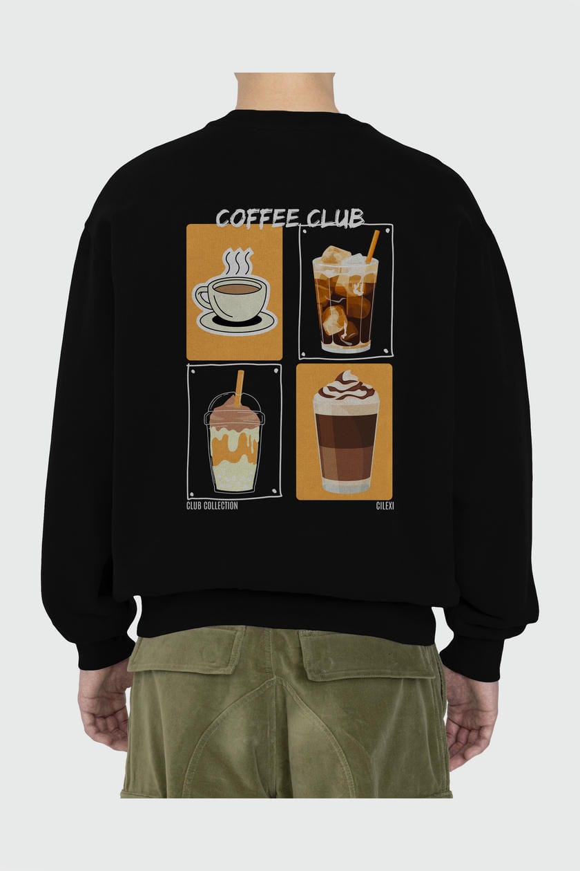 Coffee Club Arka Baskılı Oversize Sweatshirt Erkek Kadın Unisex