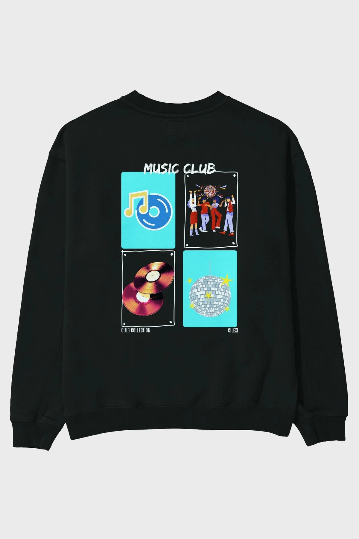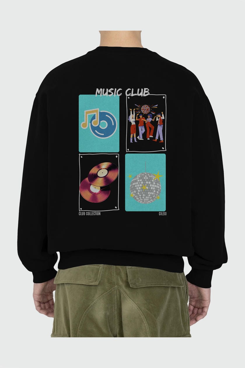 Music Club Arka Baskılı Oversize Sweatshirt Erkek Kadın Unisex
