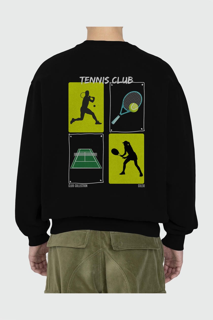 Tennis Club Arka Baskılı Oversize Sweatshirt Erkek Kadın Unisex