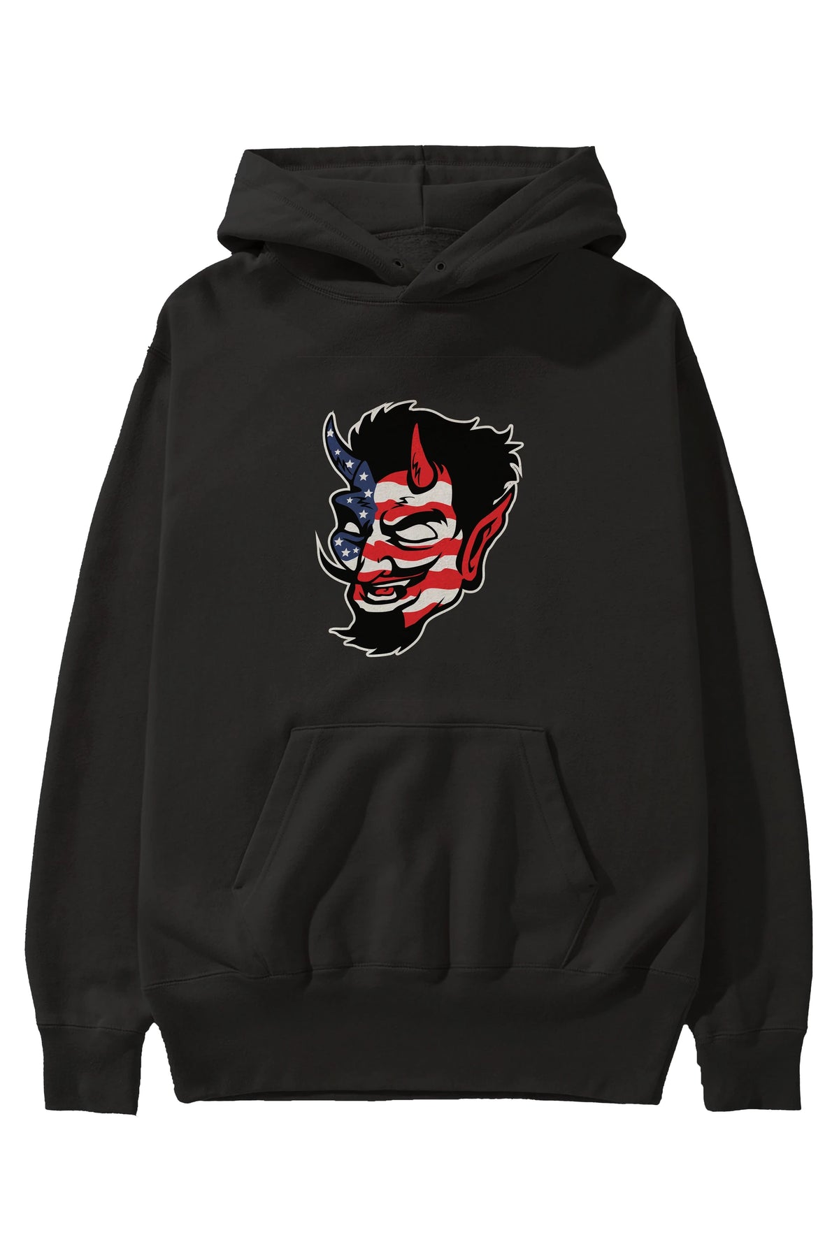 American Devil Ön Baskılı Hoodie Oversize Kapüşonlu Sweatshirt Erkek Kadın Unisex