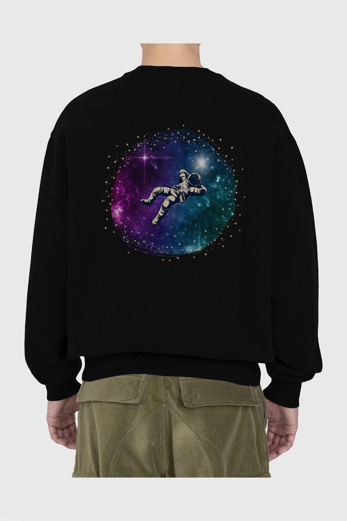 Astronaut in the Galaxy Arka Baskılı Oversize Sweatshirt Erkek Kadın Unisex