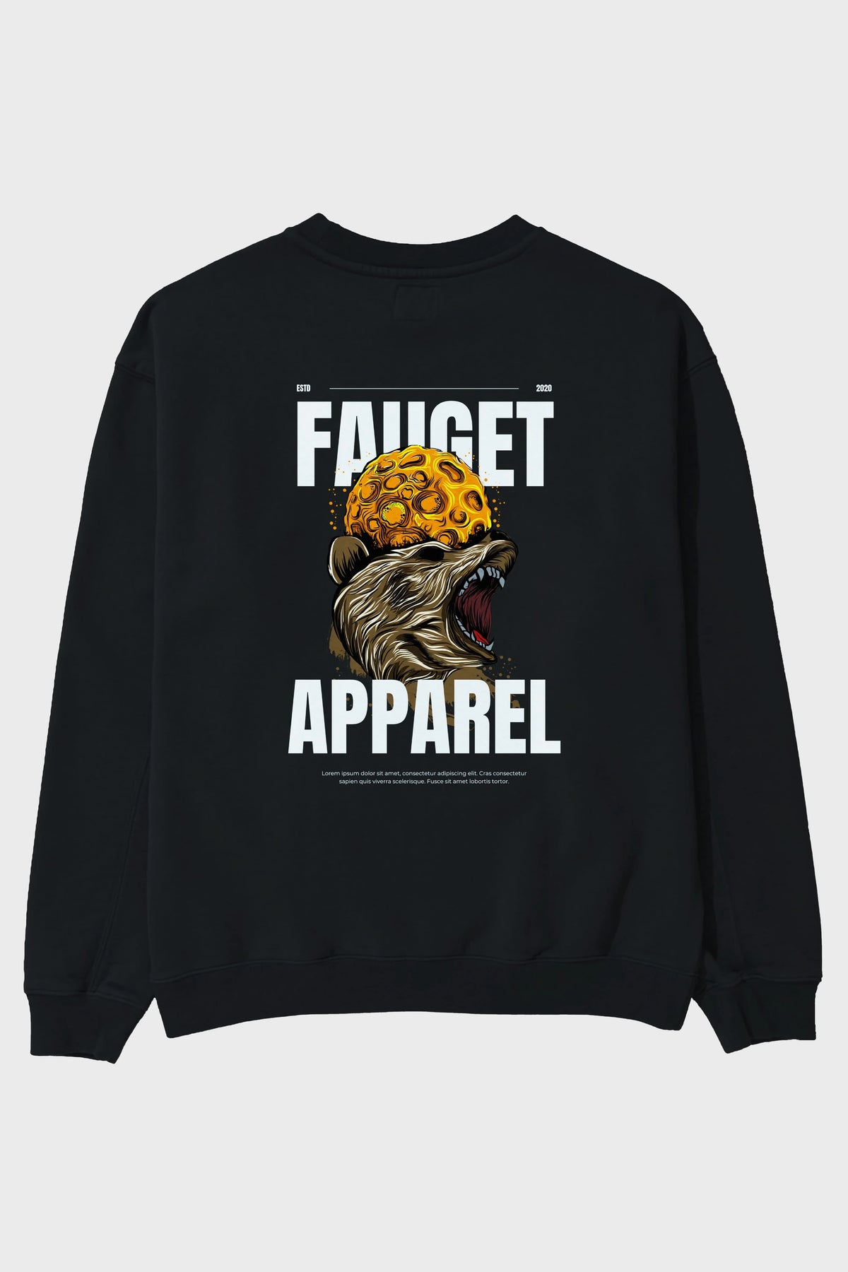 Bear Angry Fauget Apparel Arka Baskılı Oversize Sweatshirt Erkek Kadın Unisex