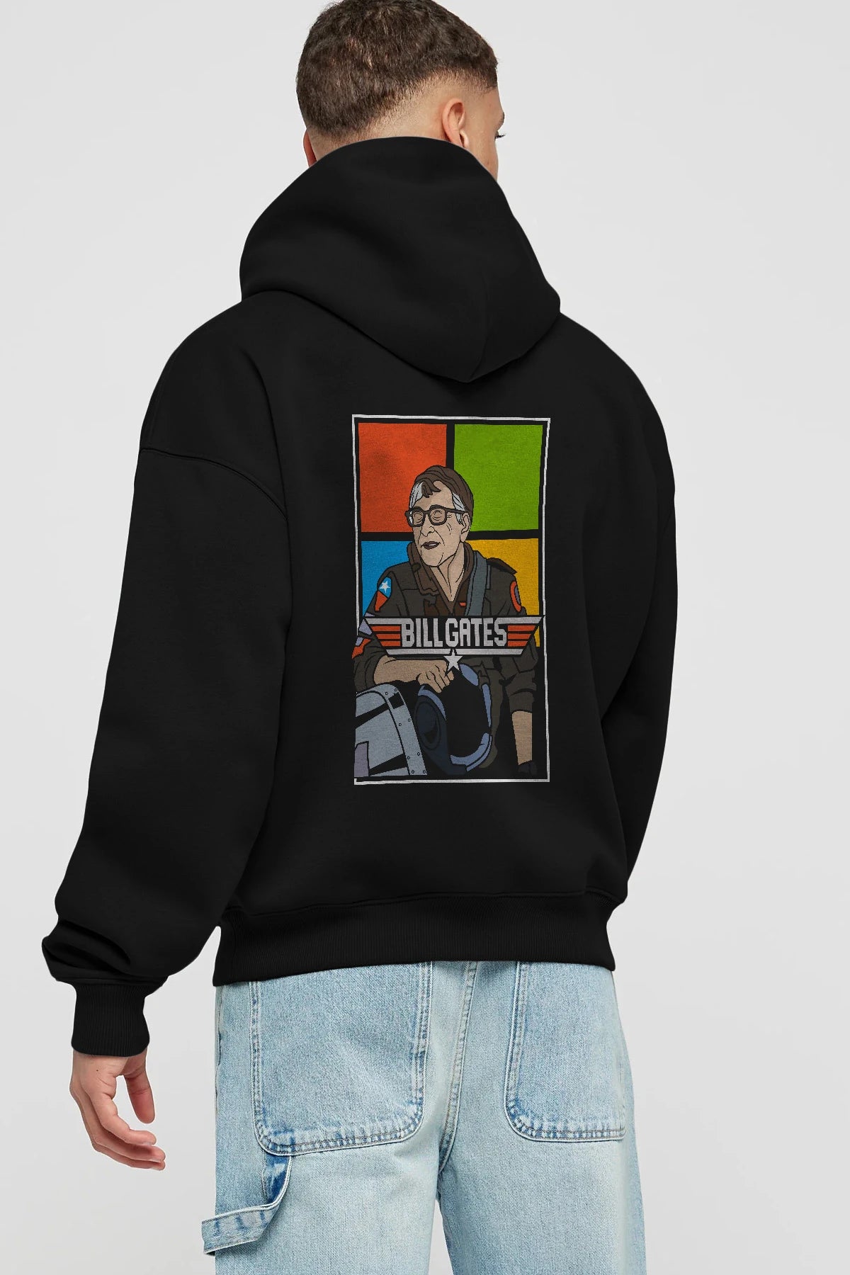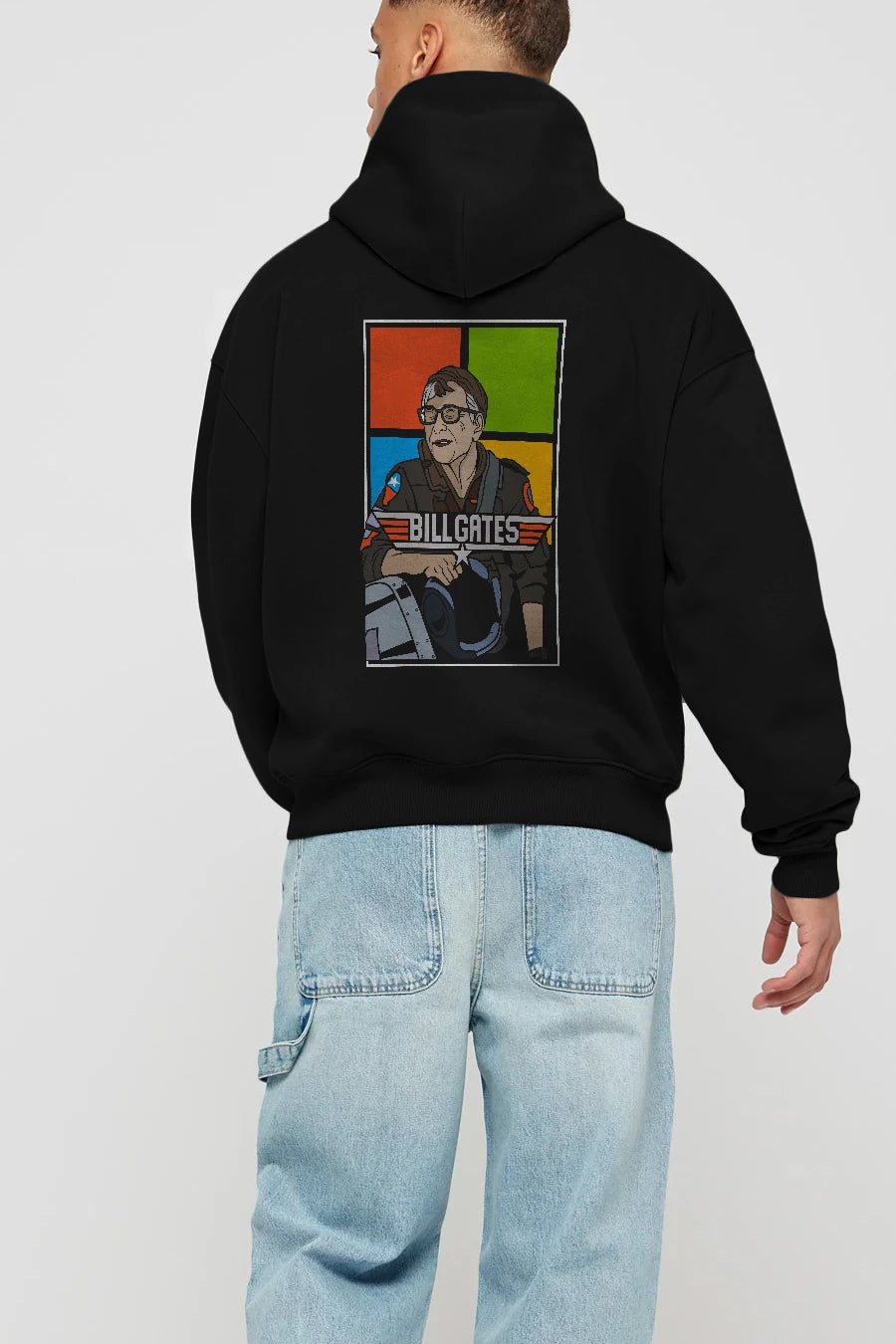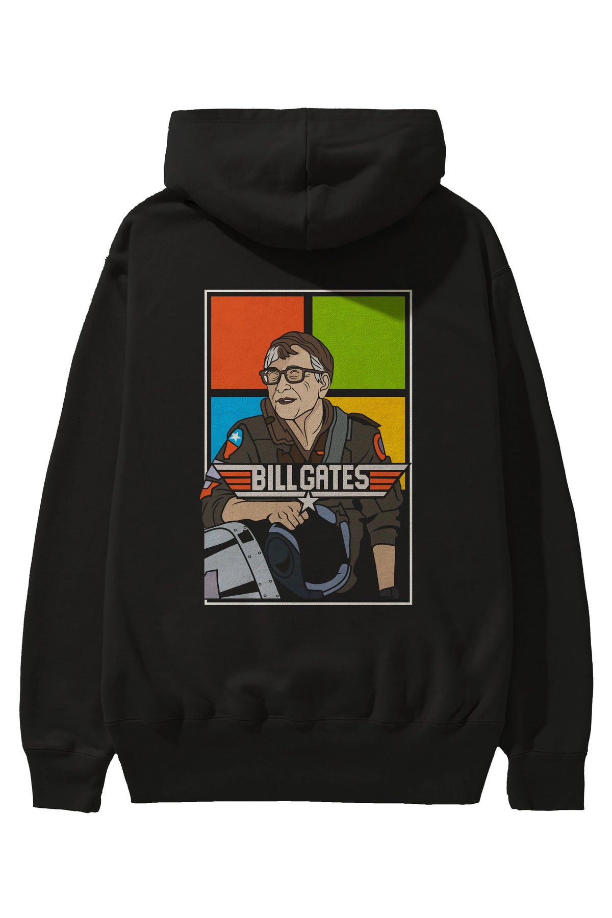 Bill Gates Top Gun Arka Baskılı Hoodie Oversize Kapüşonlu Sweatshirt Erkek Kadın Unisex