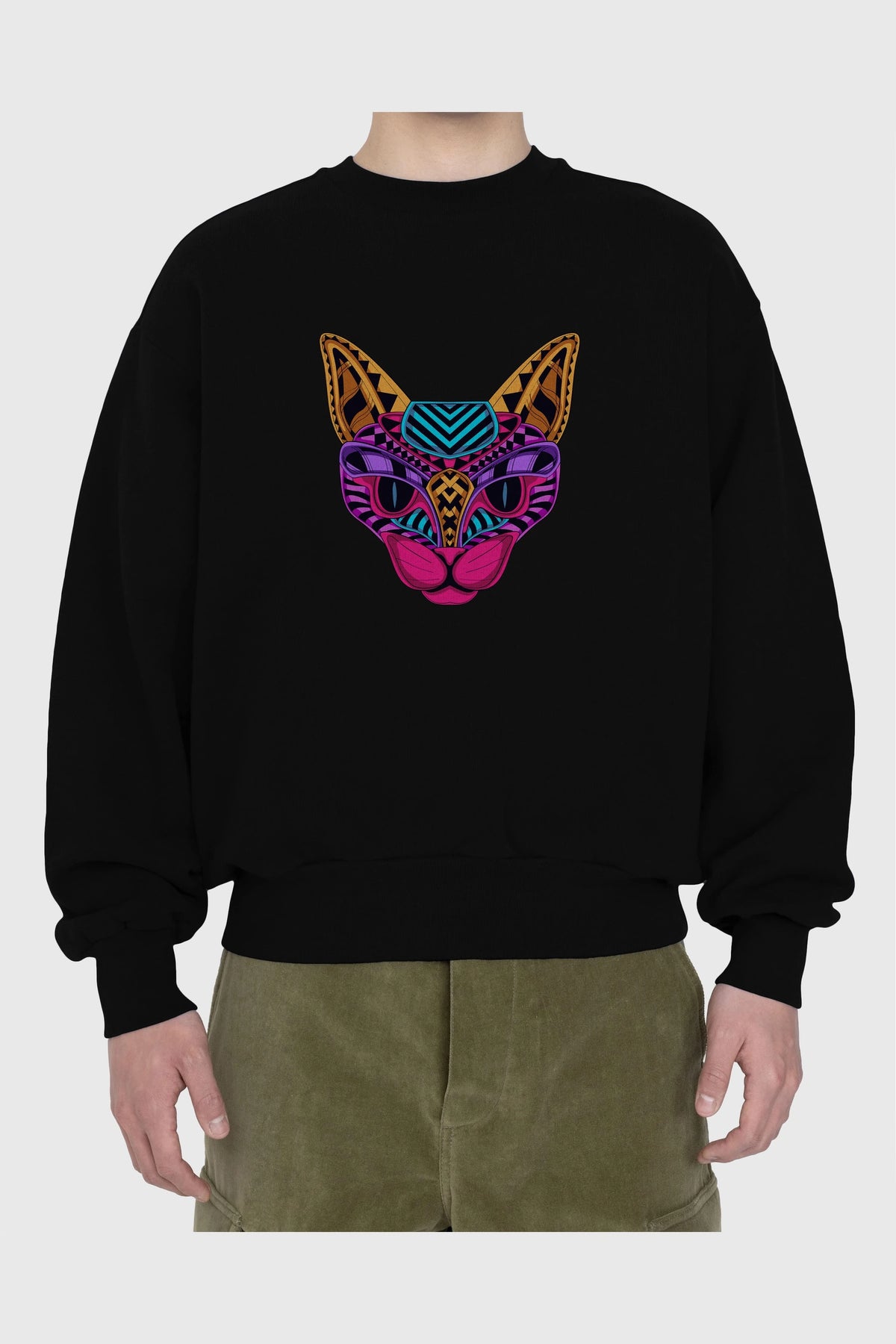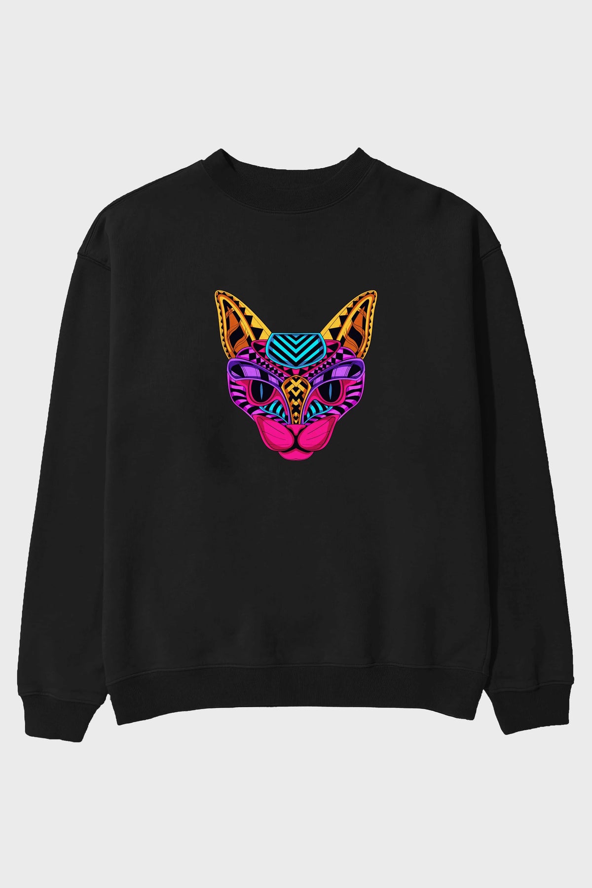 Black Neon Cat Ön Baskılı Oversize Sweatshirt Erkek Kadın Unisex