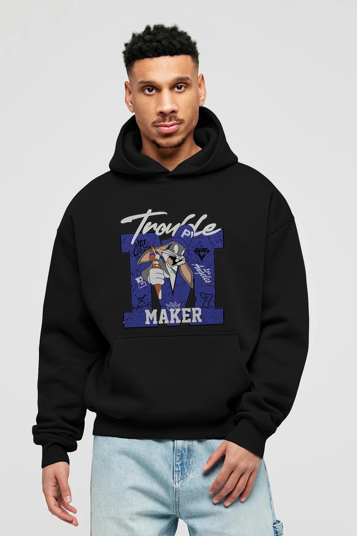 Bugs Bunny Ön Baskılı Hoodie Oversize Kapüşonlu Sweatshirt Erkek Kadın Unisex