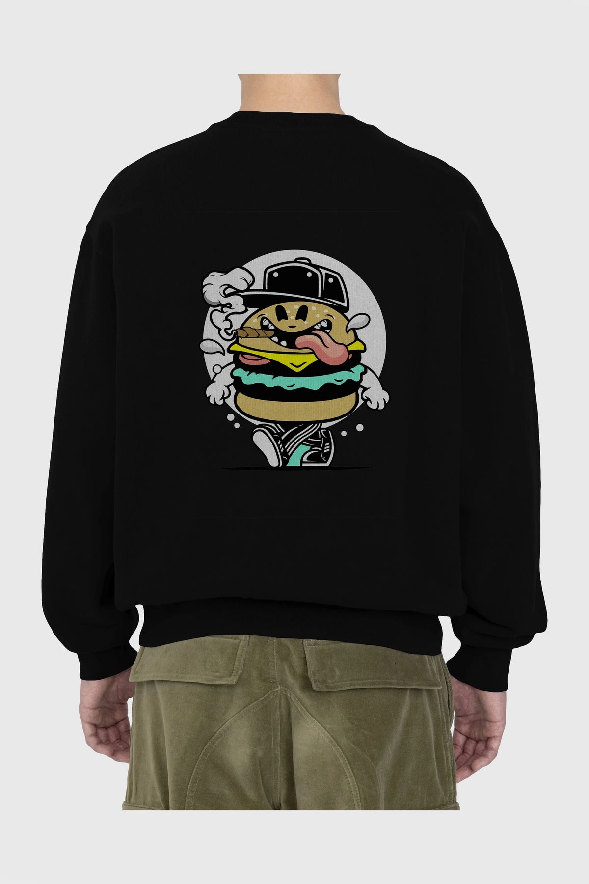 Burger Guy Arka Baskılı Oversize Sweatshirt Erkek Kadın Unisex
