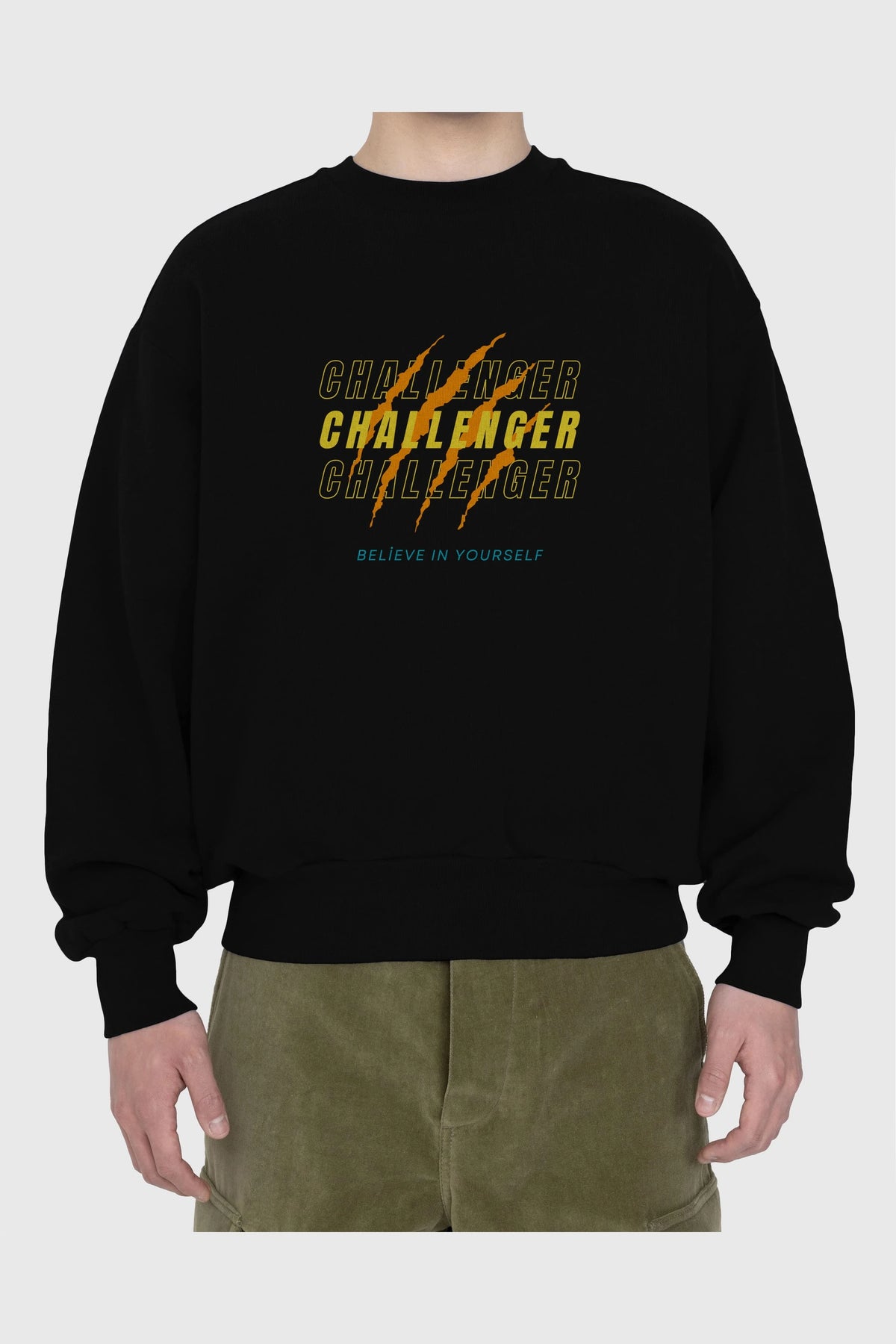 Challenger Yazılı Ön Baskılı Oversize Sweatshirt Erkek Kadın Unisex