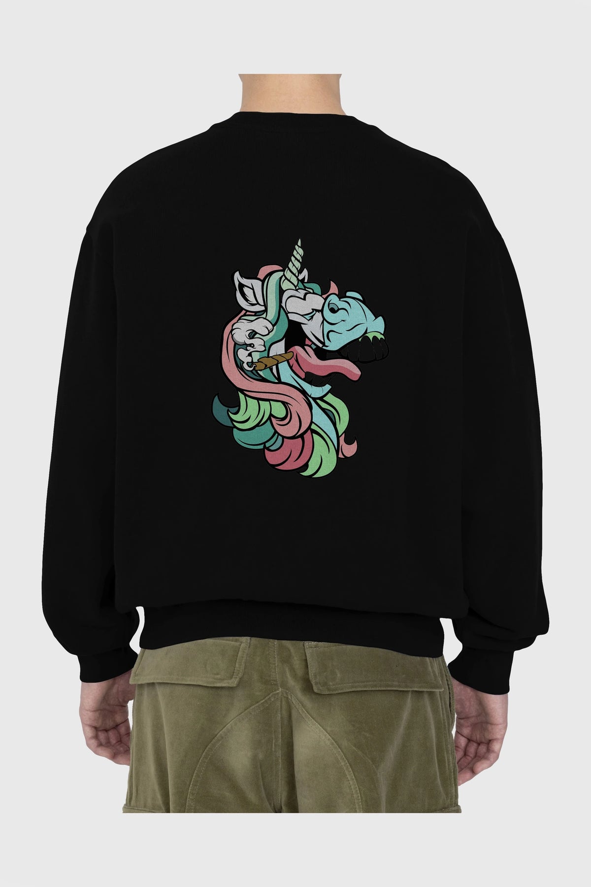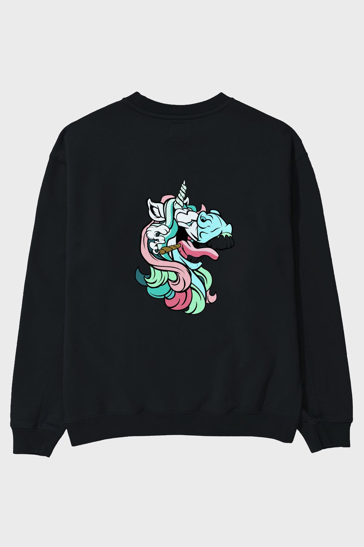 Crazy Unicorn Arka Baskılı Oversize Sweatshirt Erkek Kadın Unisex
