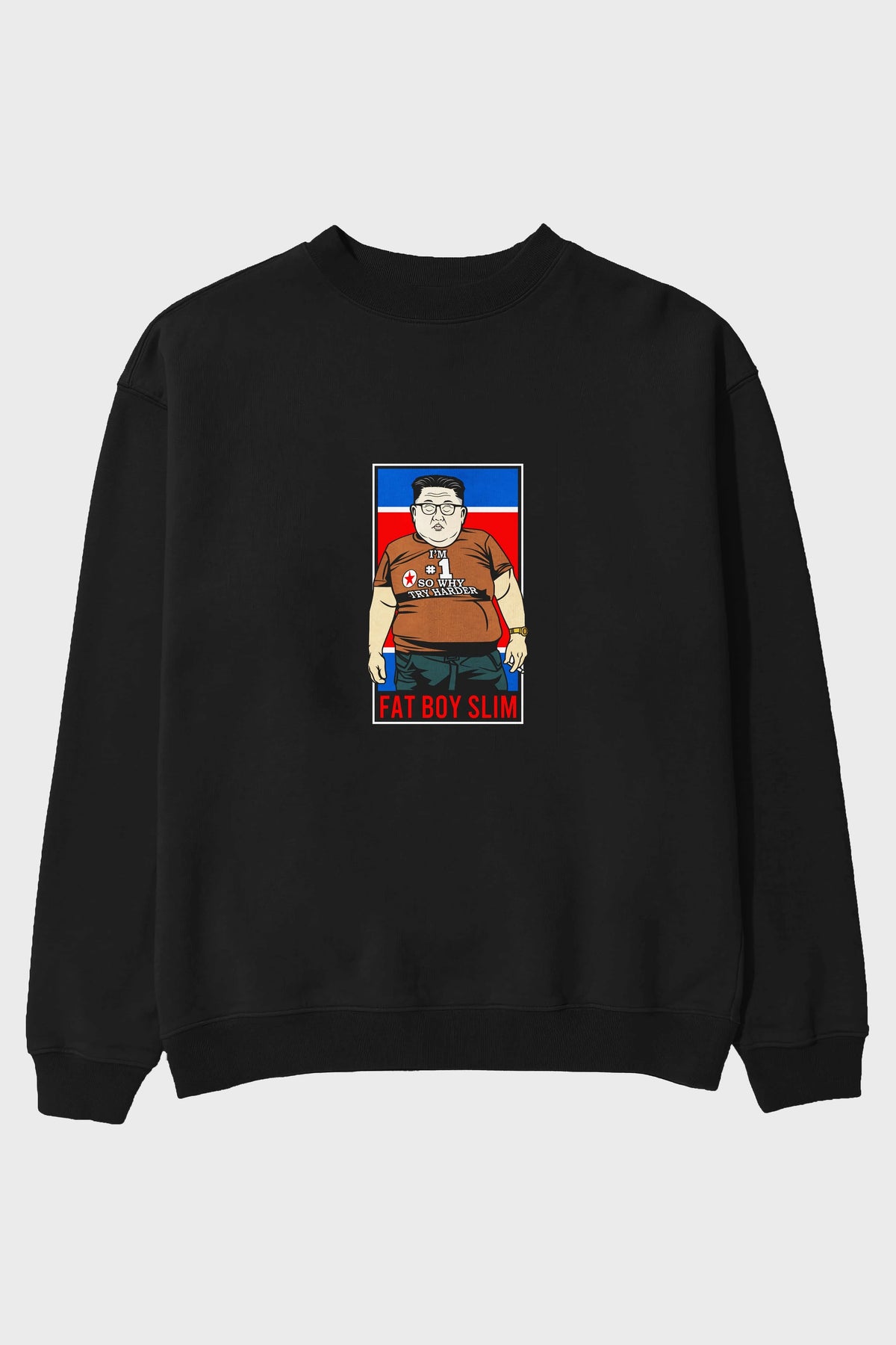 Fat Boy Slim Kim Jong Un Ön Baskılı Oversize Sweatshirt Erkek Kadın Unisex