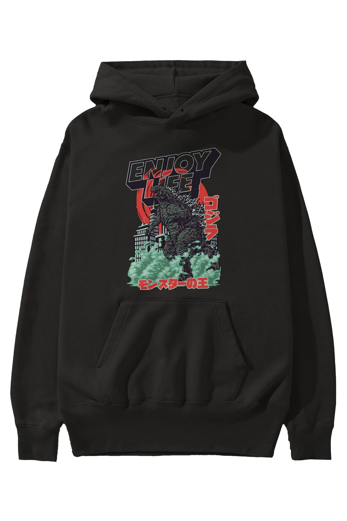 Godzilla Ön Baskılı Hoodie Oversize Kapüşonlu Sweatshirt Erkek Kadın Unisex