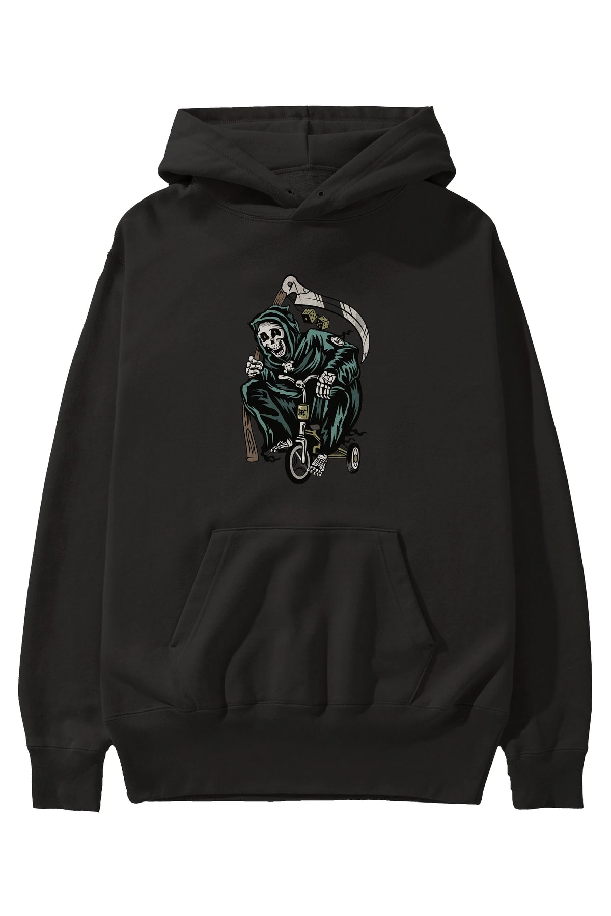 Grim Reaper Bicycle Ön Baskılı Hoodie Oversize Kapüşonlu Sweatshirt Erkek Kadın Unisex