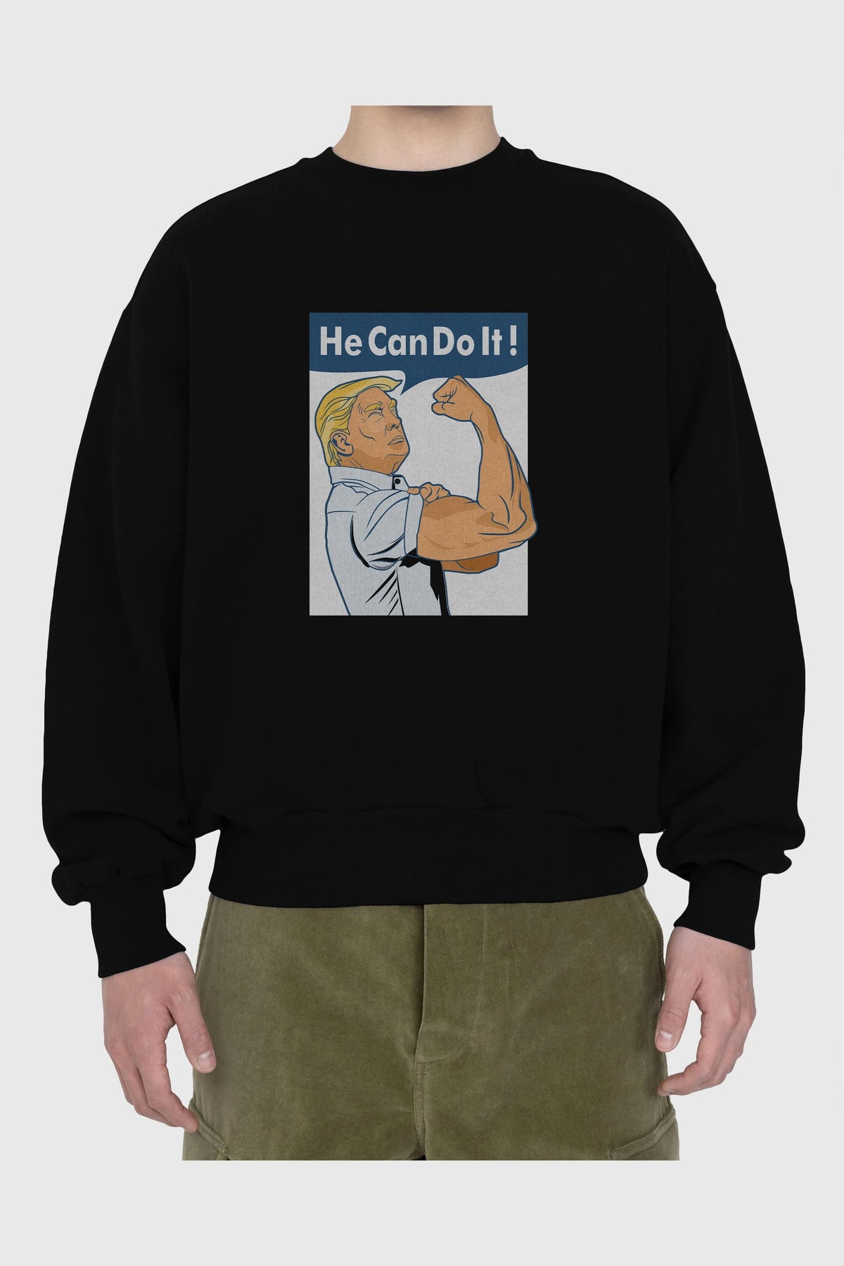 He Can Do It Trump Ön Baskılı Oversize Sweatshirt Erkek Kadın Unisex