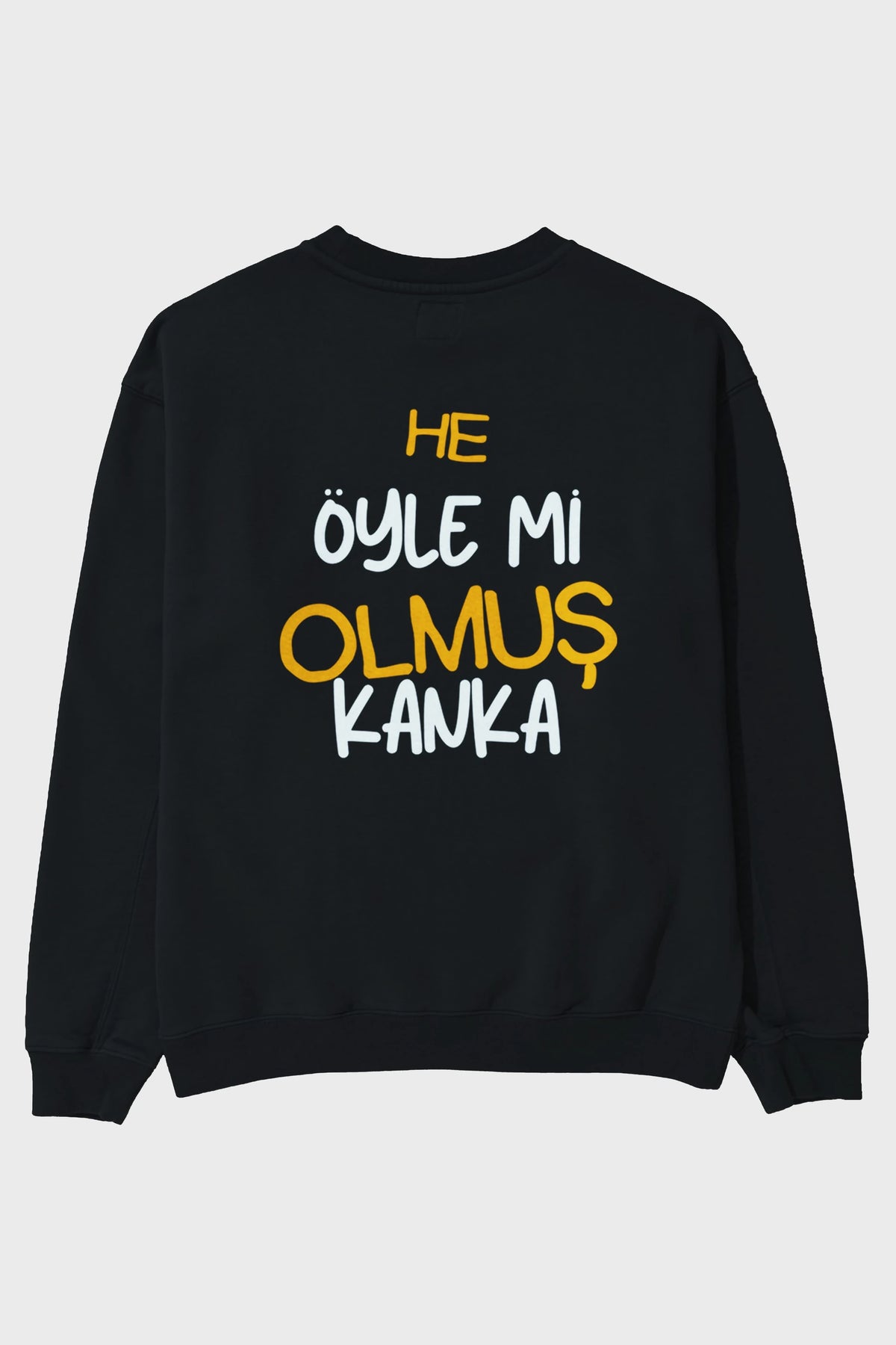 He öyle mi Olmuş Kanka Yazılı Arka Baskılı Oversize Sweatshirt Erkek Kadın Unisex