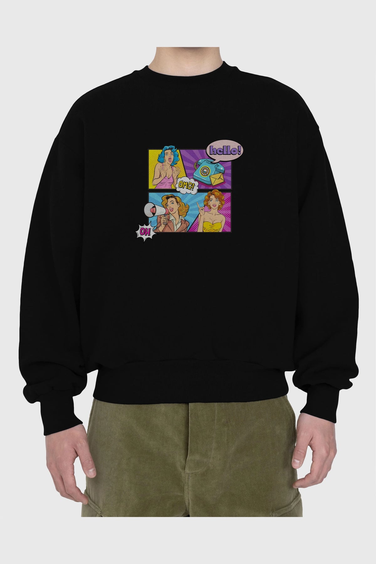 Hello OMG Ön Baskılı Oversize Sweatshirt Erkek Kadın Unisex