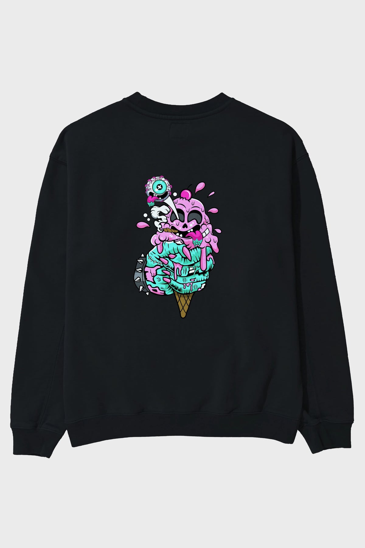 Ice Cream Zombie Arka Baskılı Oversize Sweatshirt Erkek Kadın Unisex