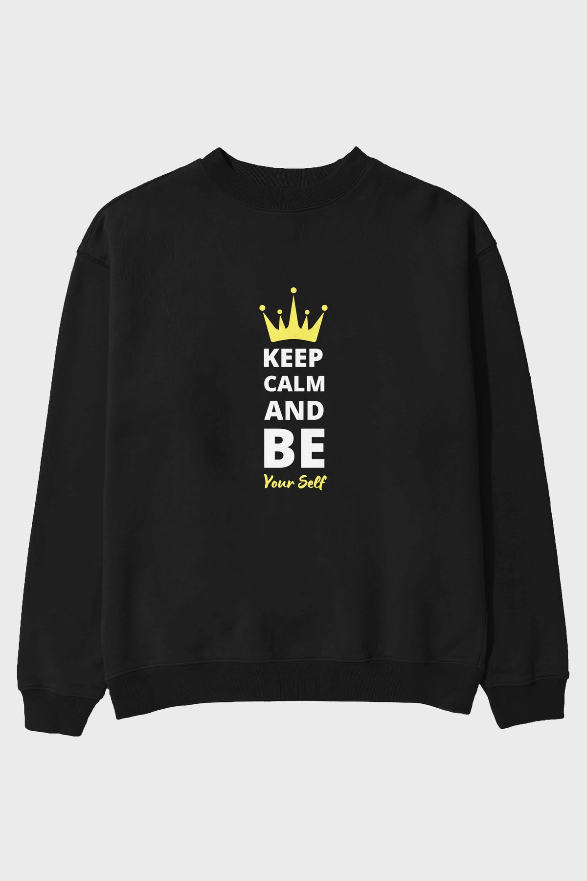 Keep Calm And Be Your Self Yazılı Ön Baskılı Oversize Sweatshirt Erkek Kadın Unisex