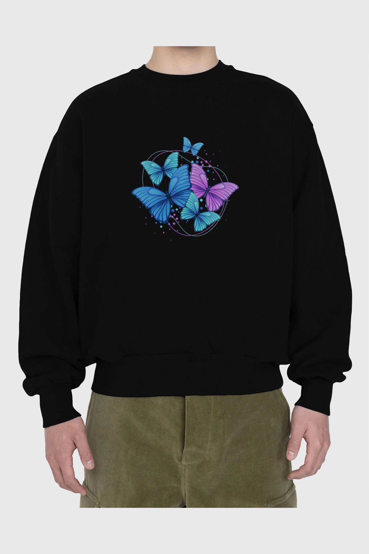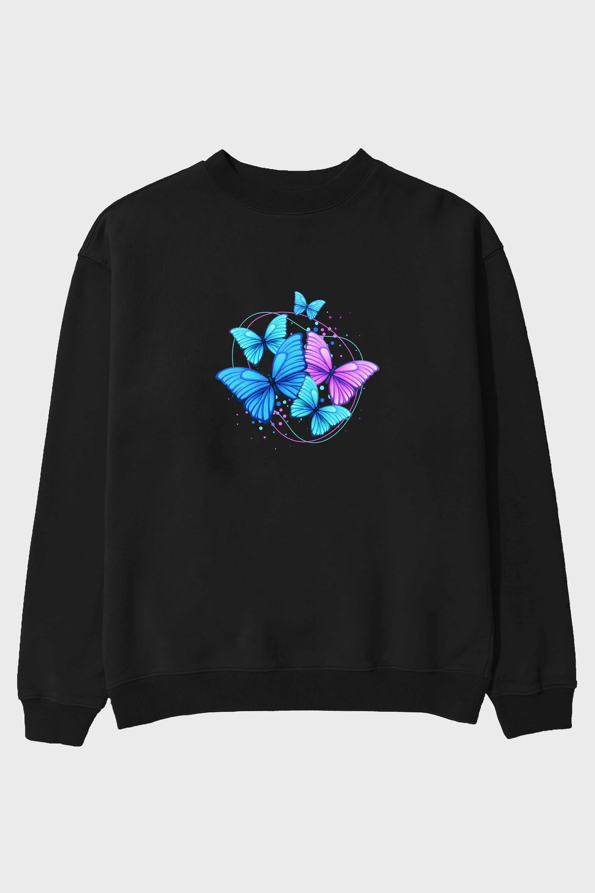 Kelebek Ön Baskılı Oversize Sweatshirt Erkek Kadın Unisex
