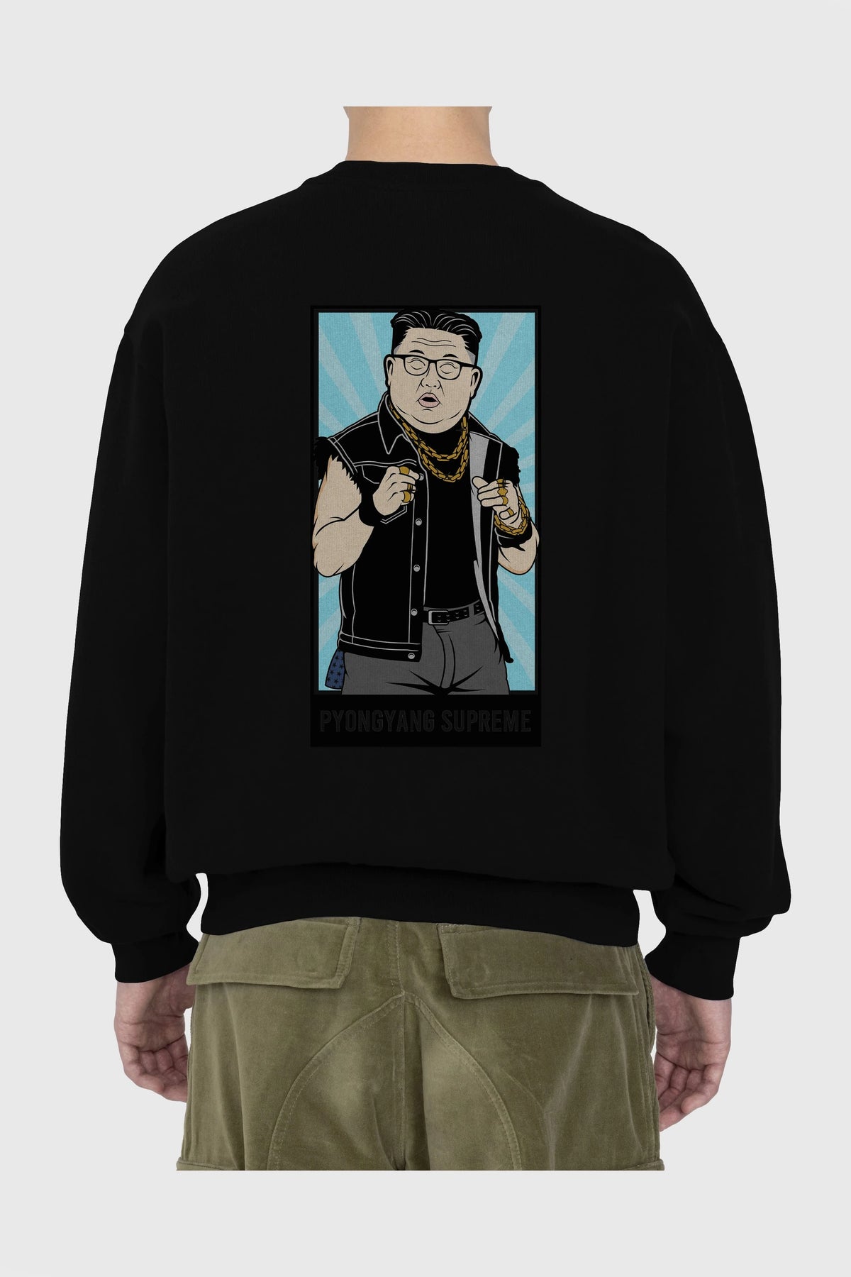 Kim Jong Un Pyongyang Supreme Arka Baskılı Oversize Sweatshirt Erkek Kadın Unisex
