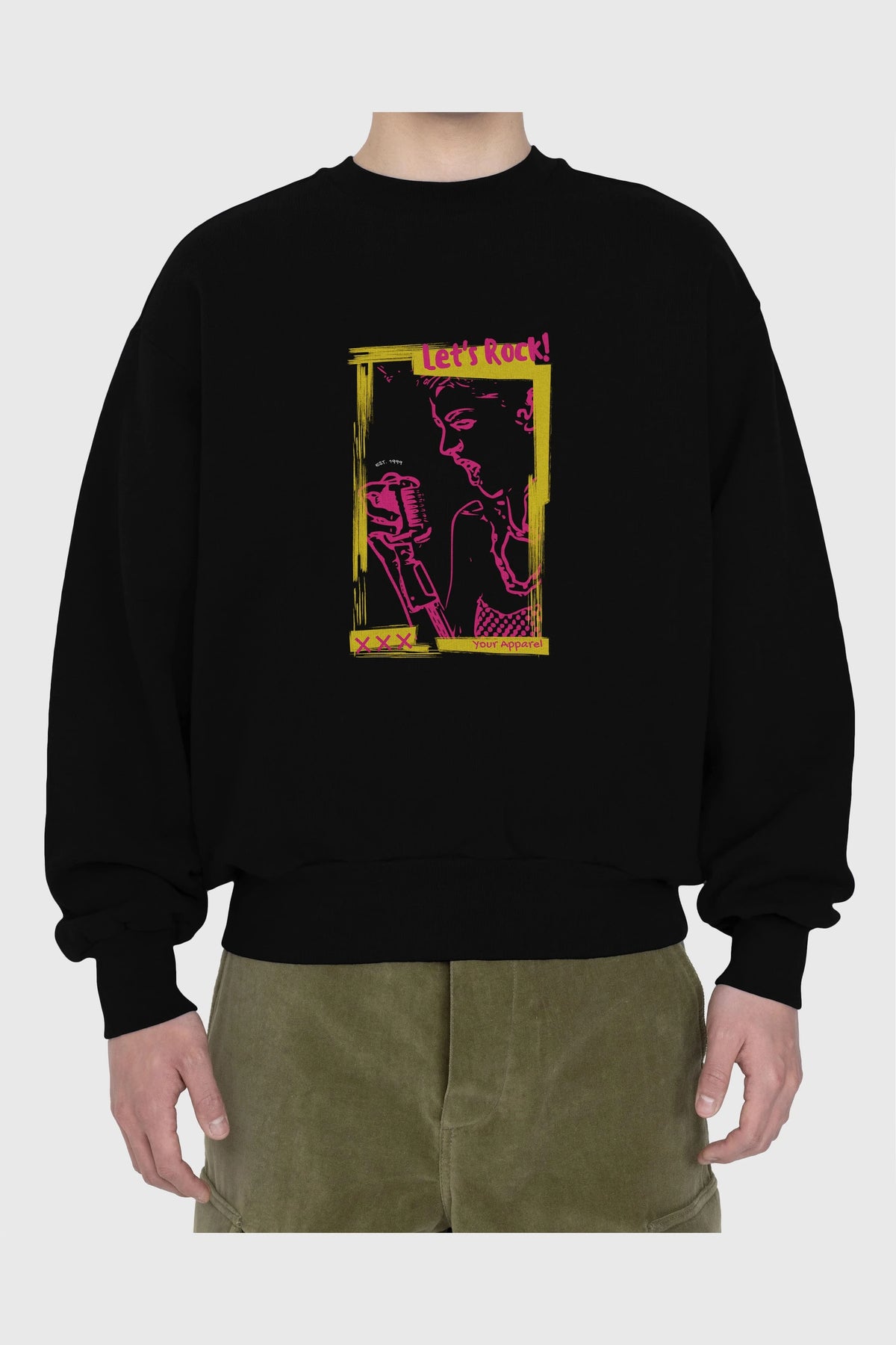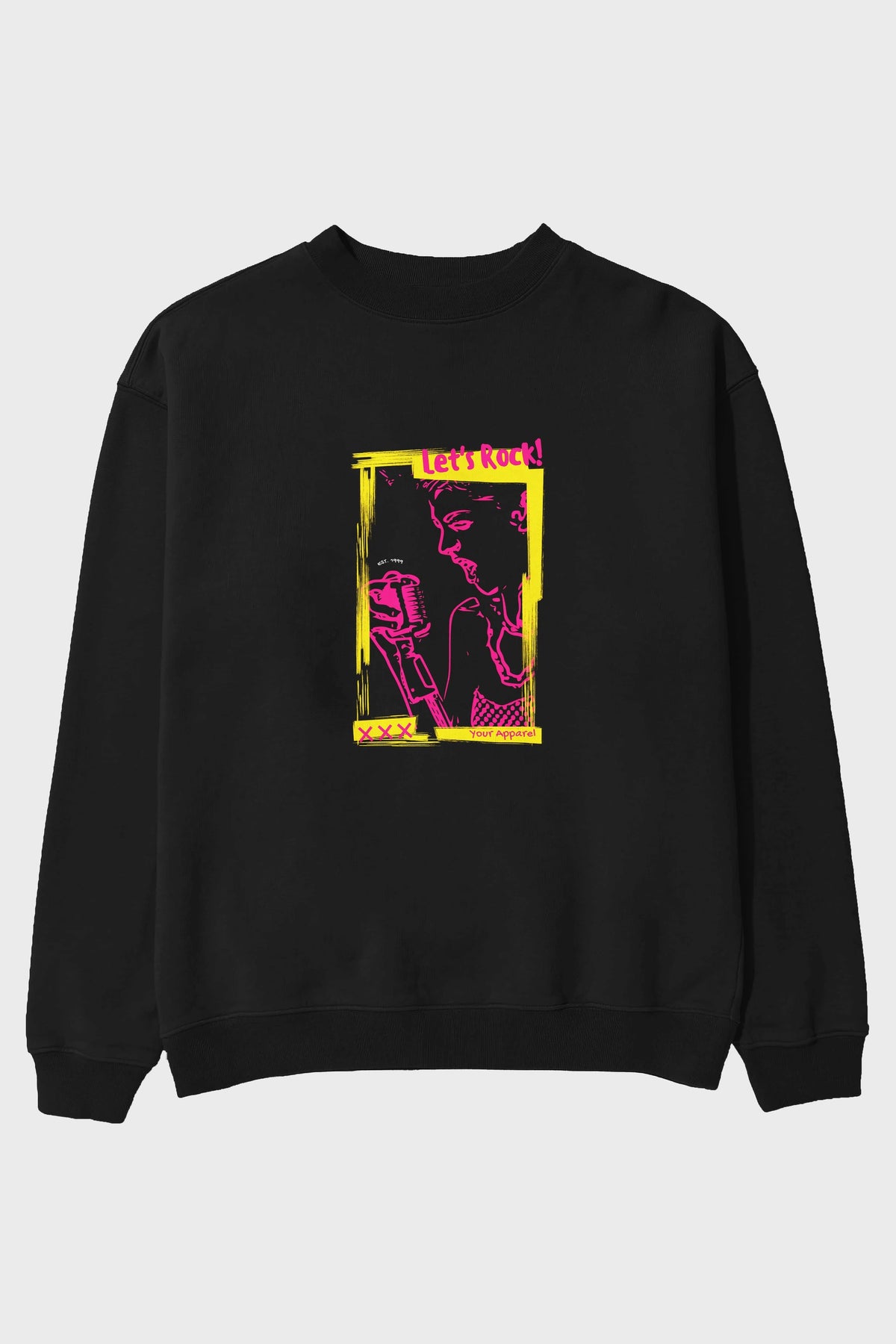 Let's Rock Yazılı Ön Baskılı Oversize Sweatshirt Erkek Kadın Unisex