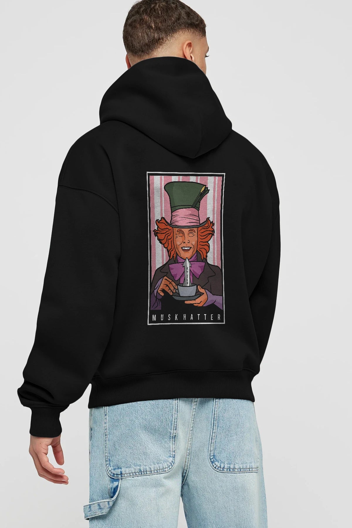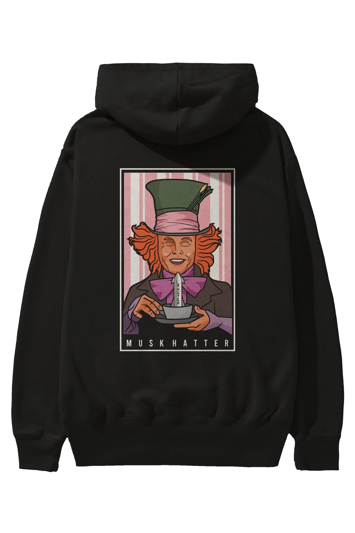 Mad Hatter Elon Musk Arka Baskılı Hoodie Oversize Kapüşonlu Sweatshirt Erkek Kadın Unisex