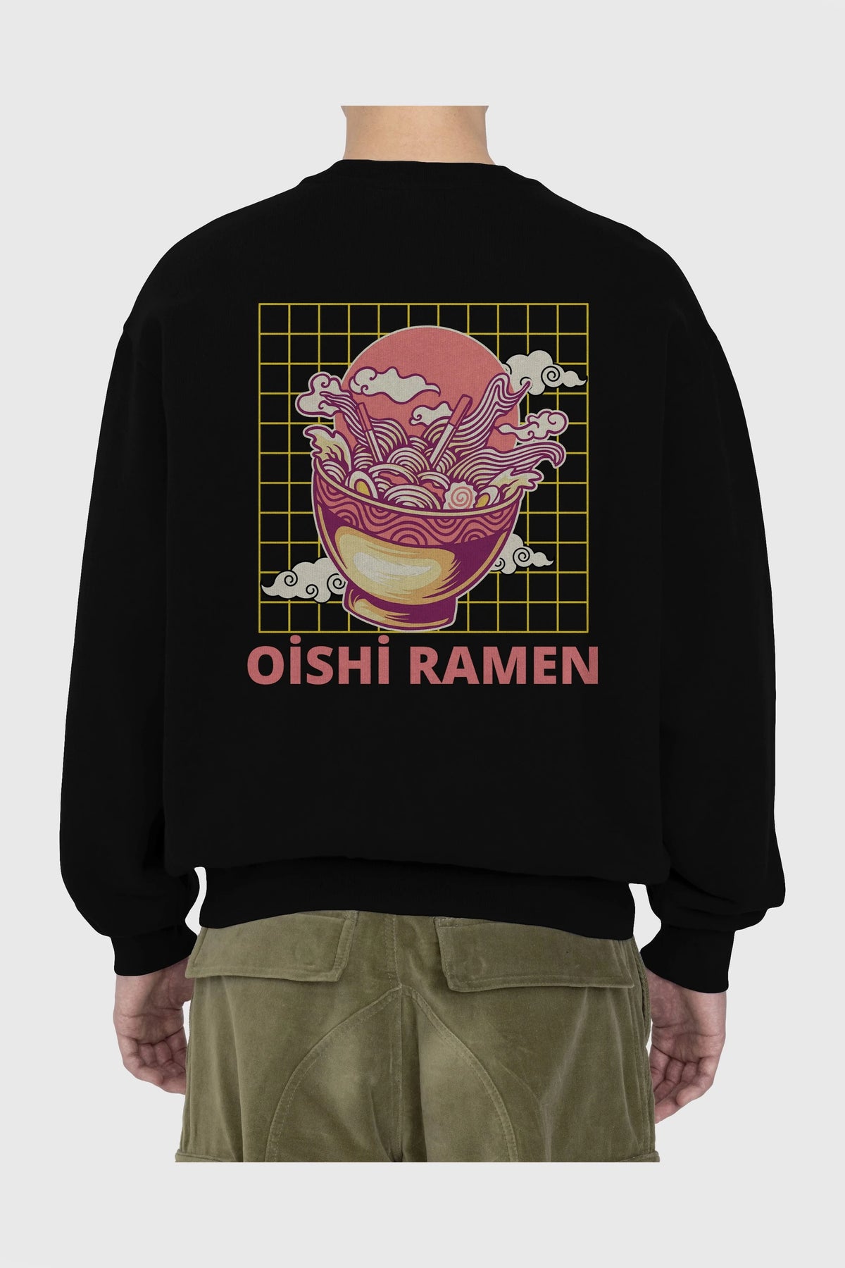 Oishi Ramen Yazılı Arka Baskılı Oversize Sweatshirt Erkek Kadın Unisex