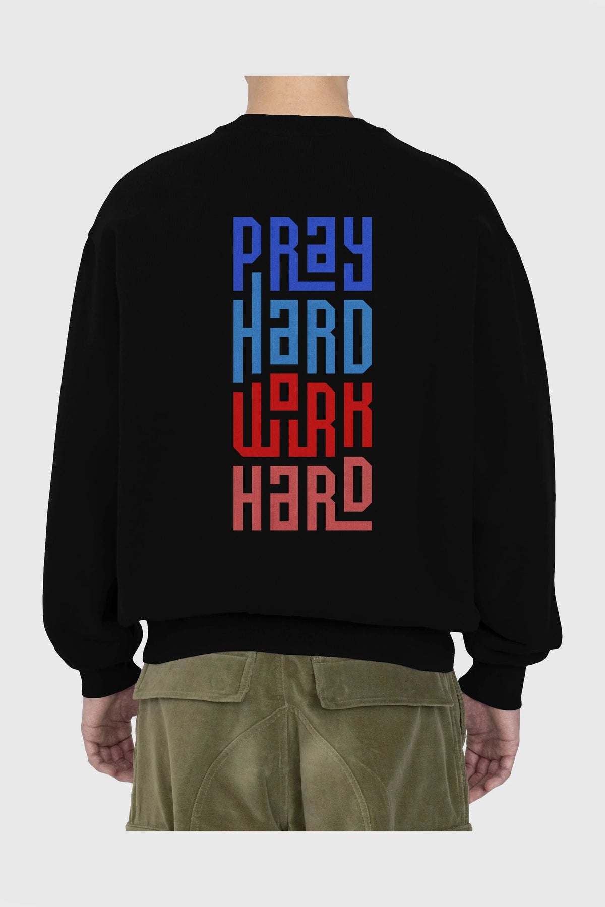 Pray Hard Work Hard Yazılı Arka Baskılı Oversize Sweatshirt Erkek Kadın Unisex