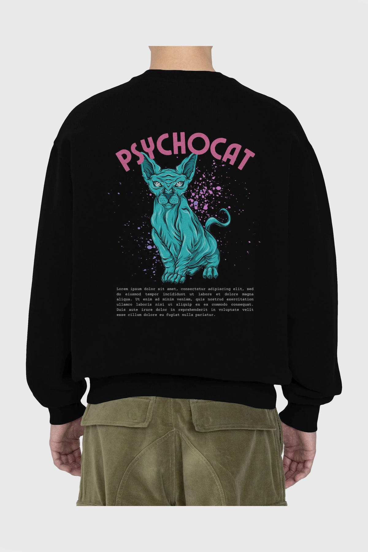 Psychocat Arka Baskılı Oversize Sweatshirt Erkek Kadın Unisex