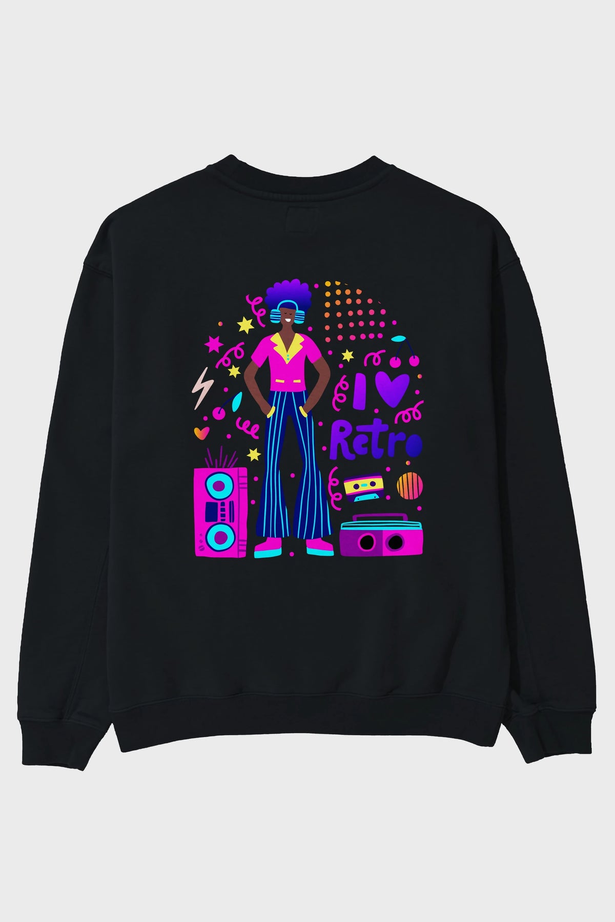 Retro Boy Party Arka Baskılı Oversize Sweatshirt Erkek Kadın Unisex