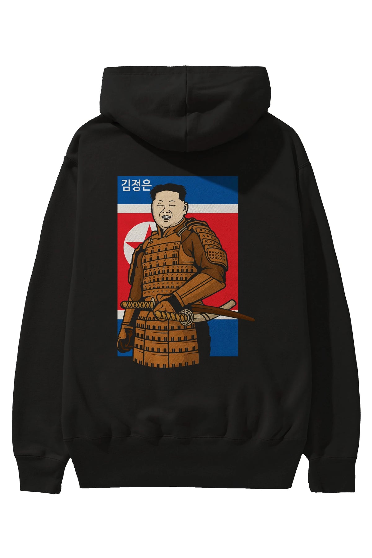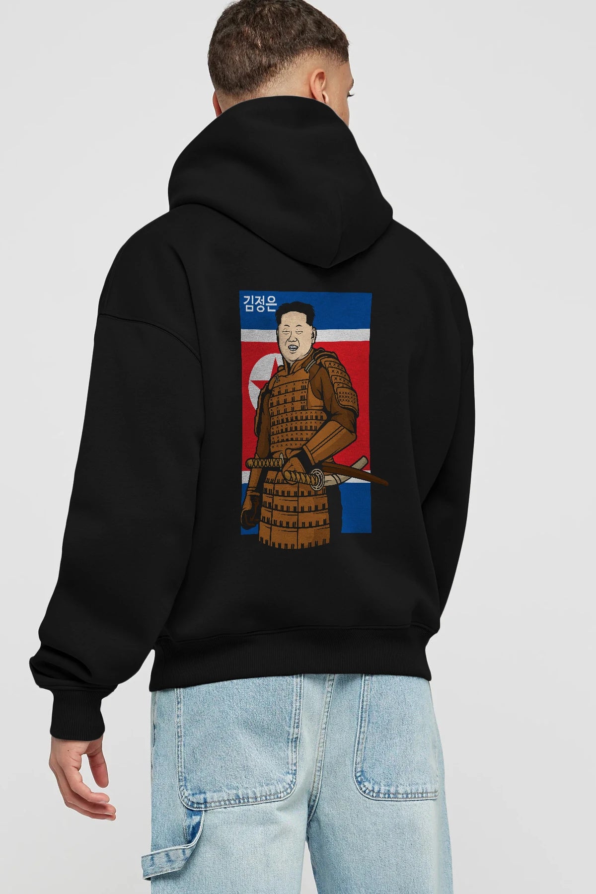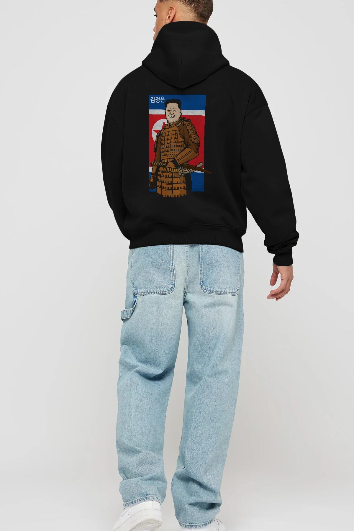 Samurai Jong Un Arka Baskılı Hoodie Oversize Kapüşonlu Sweatshirt Erkek Kadın Unisex