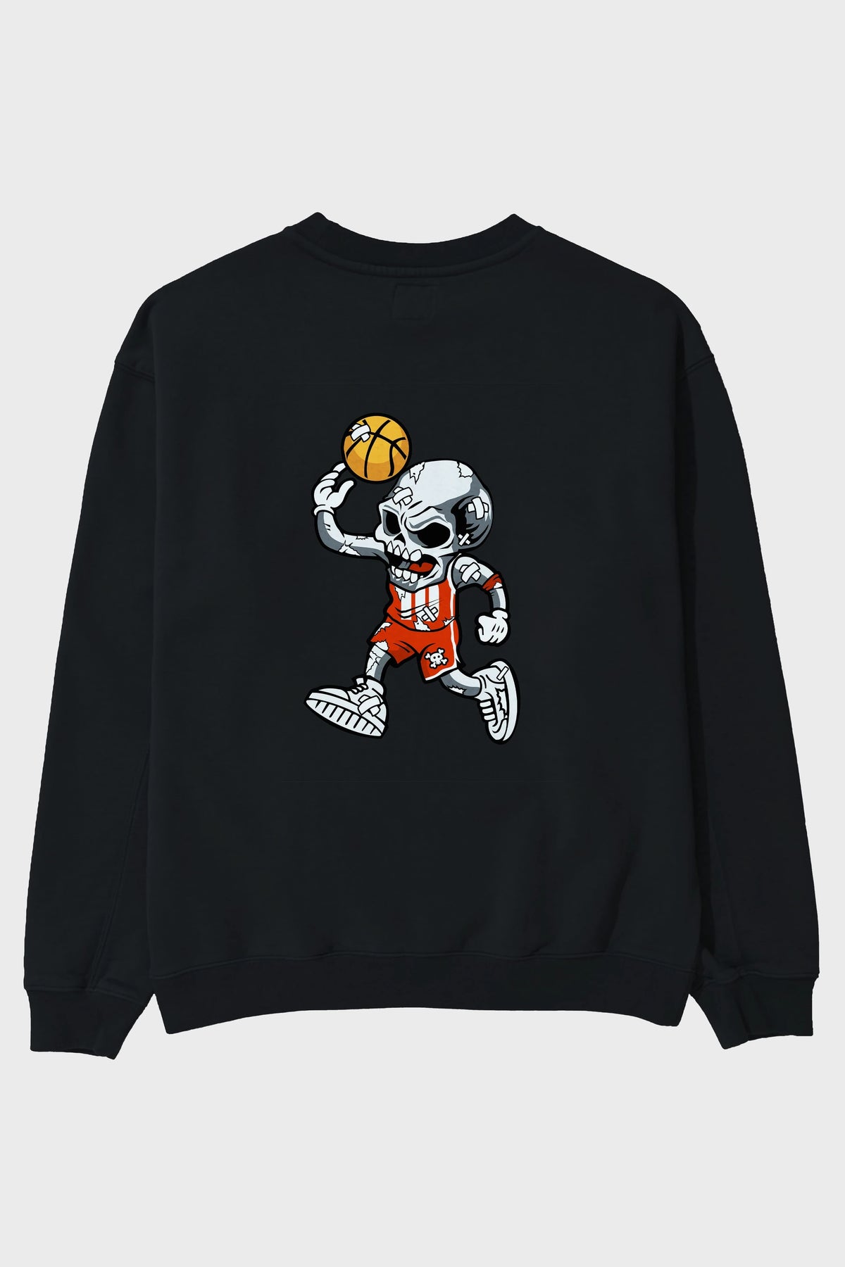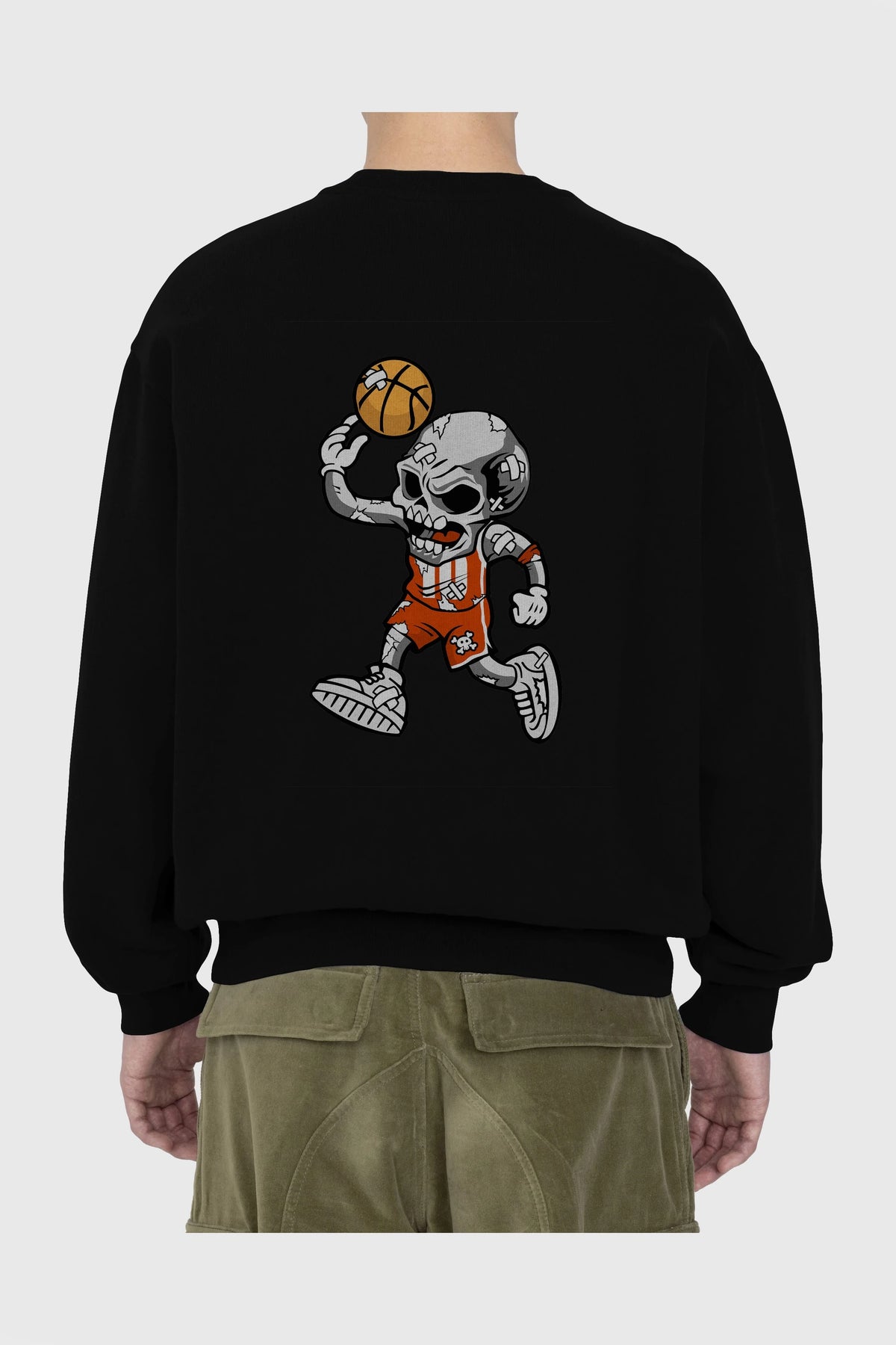 Skull Basketball Arka Baskılı Oversize Sweatshirt Erkek Kadın Unisex