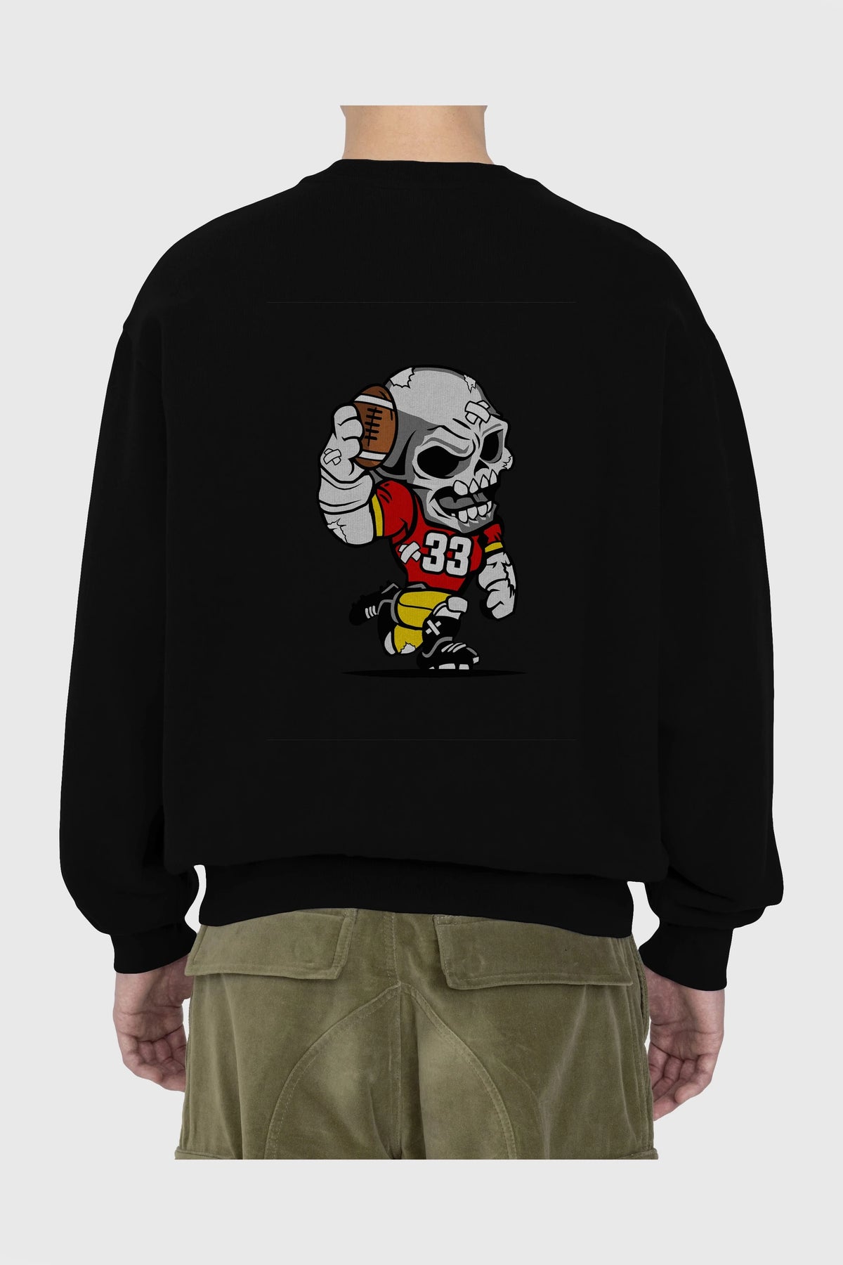 Skull Football Player Arka Baskılı Oversize Sweatshirt Erkek Kadın Unisex