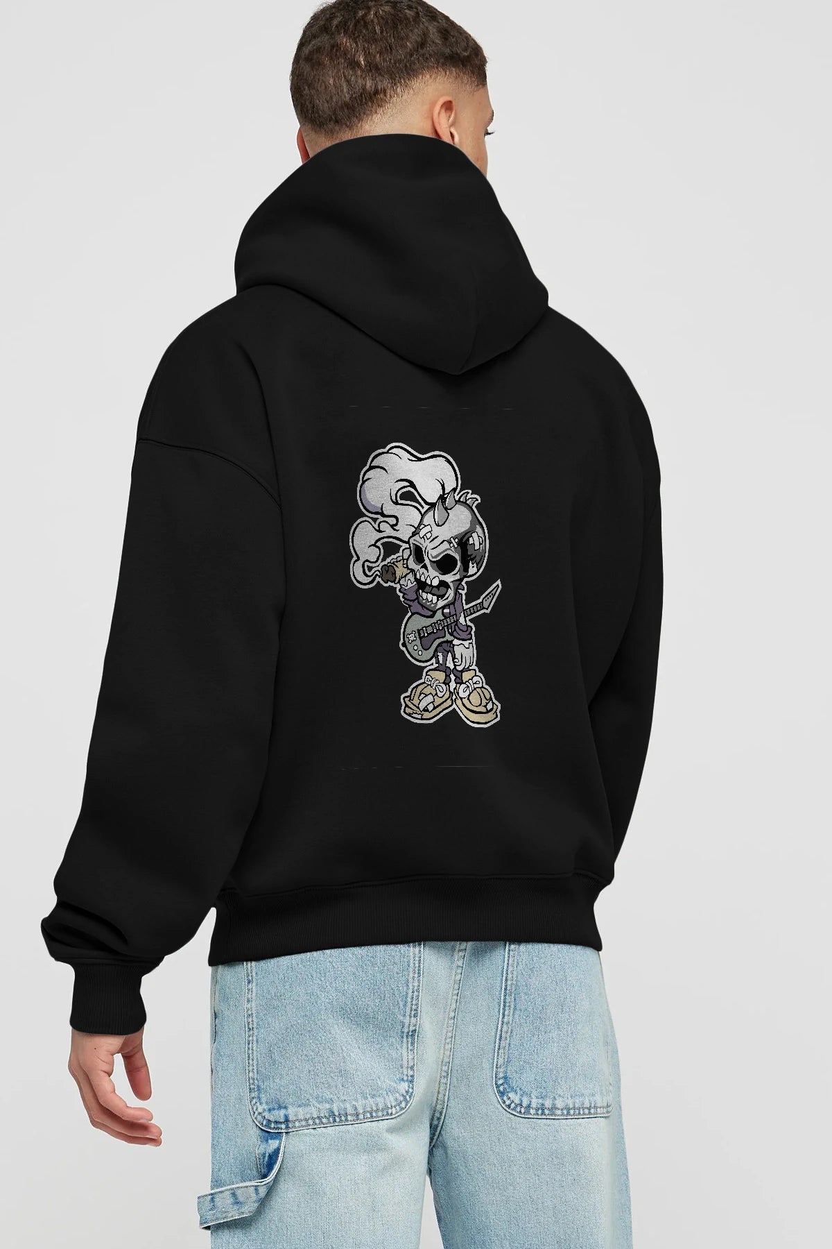 Skull Smoker Punk Rocker Arka Baskılı Hoodie Oversize Kapüşonlu Sweatshirt Erkek Kadın Unisex