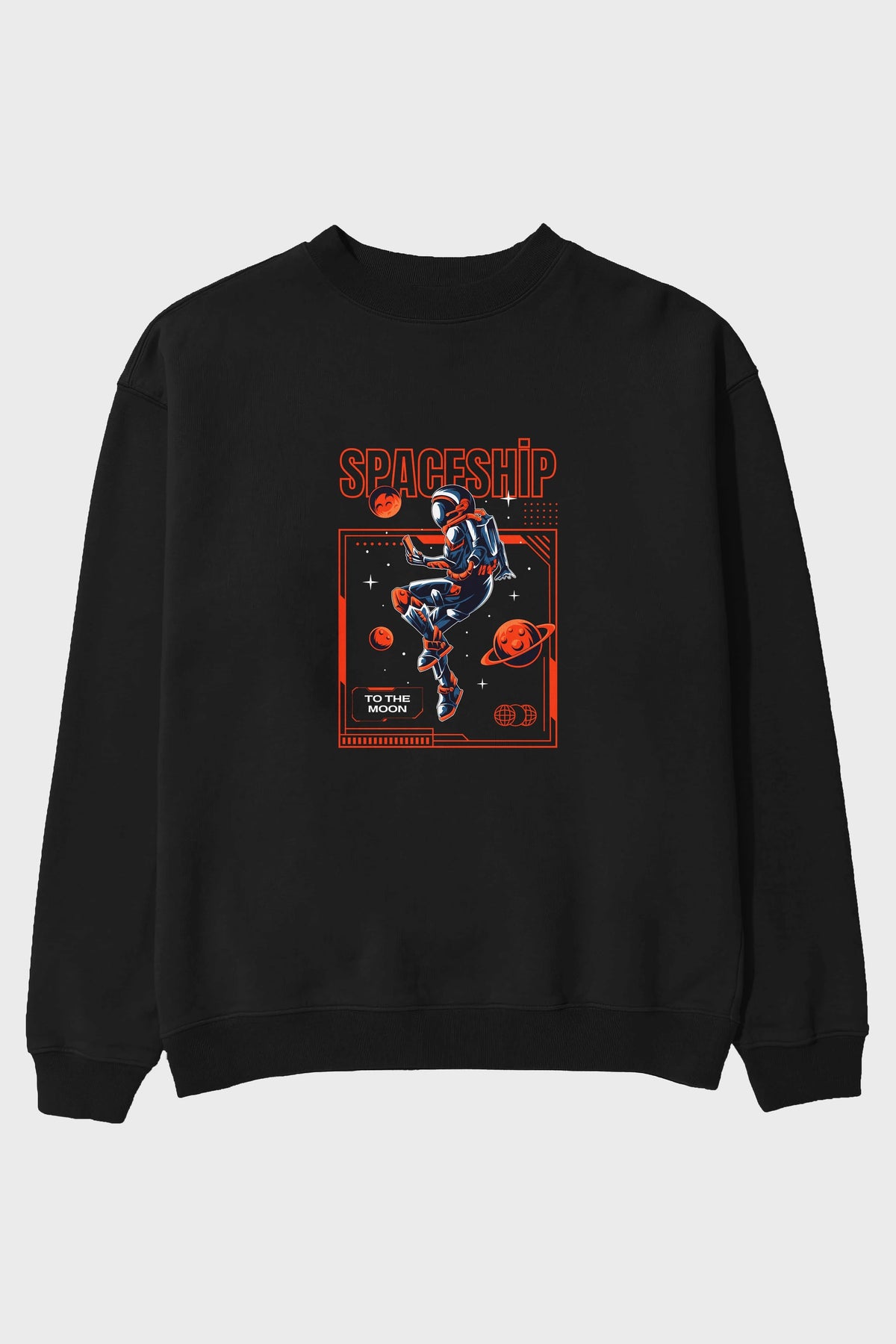 Spaceship Ön Baskılı Oversize Sweatshirt Erkek Kadın Unisex