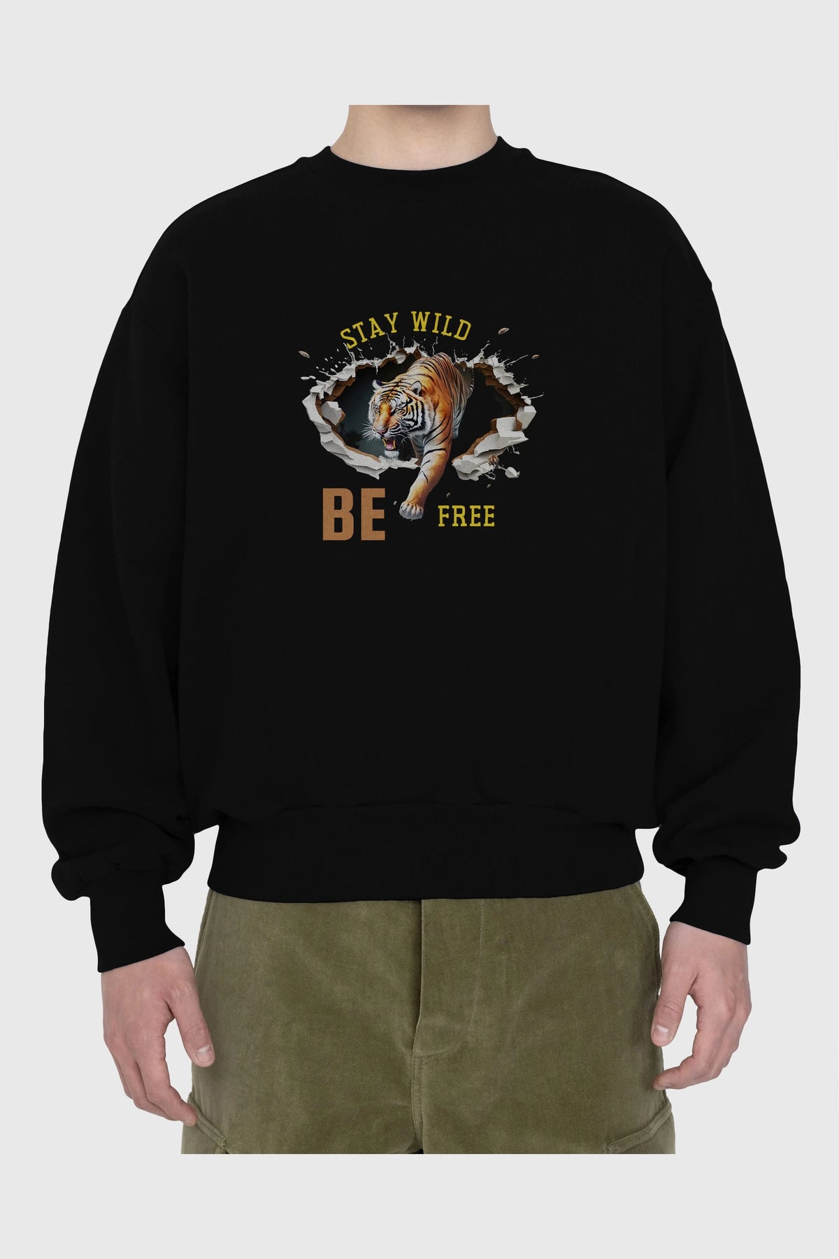 Stay Wild Be Free Yazılı Ön Baskılı Oversize Sweatshirt Erkek Kadın Unisex