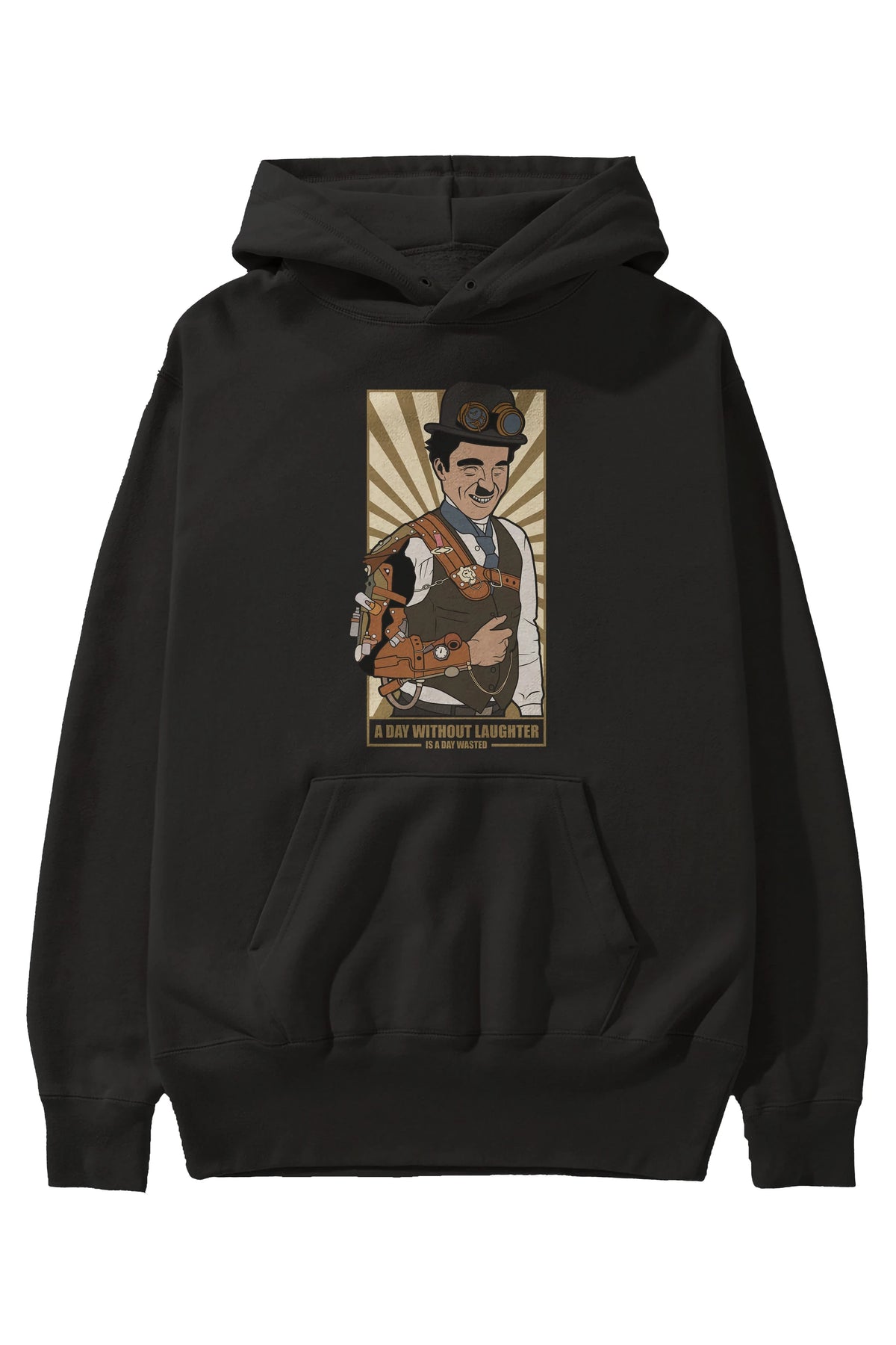 Steampunk Chaplin Ön Baskılı Hoodie Oversize Kapüşonlu Sweatshirt Erkek Kadın Unisex