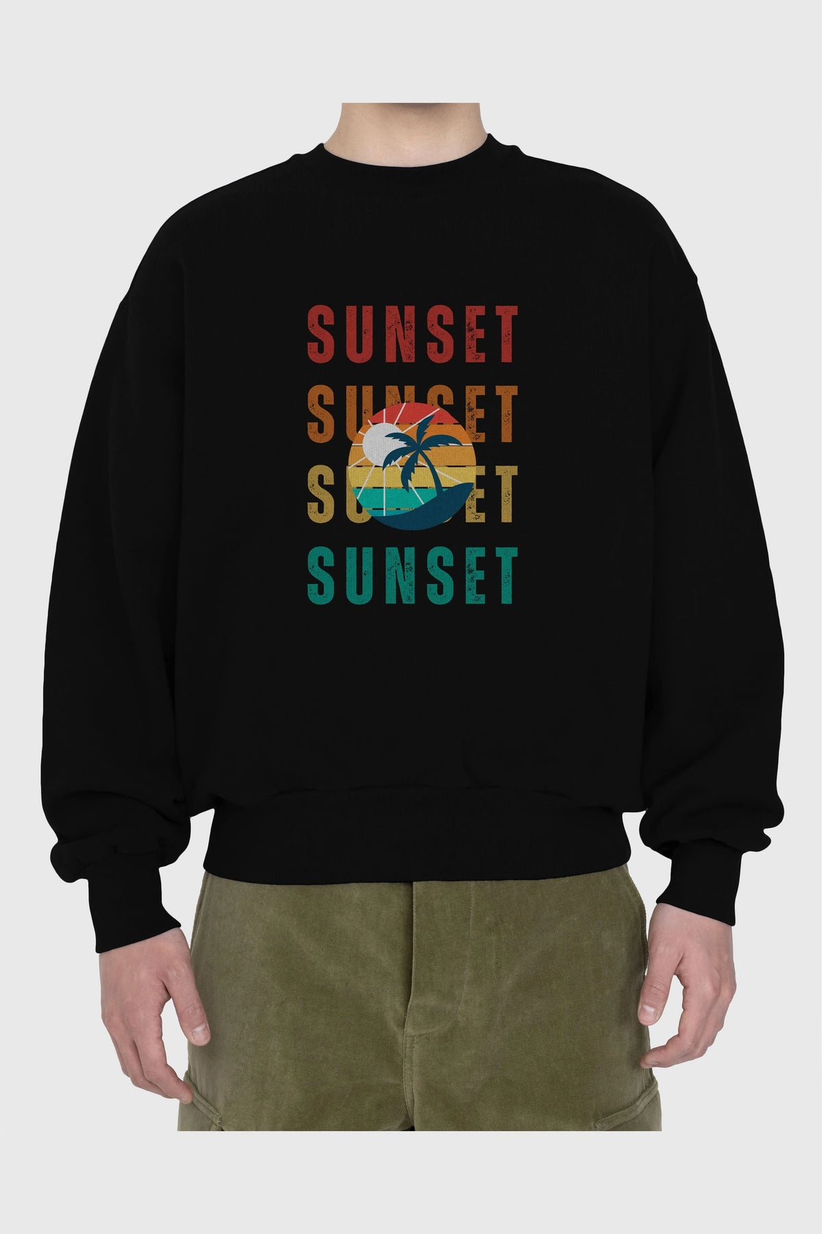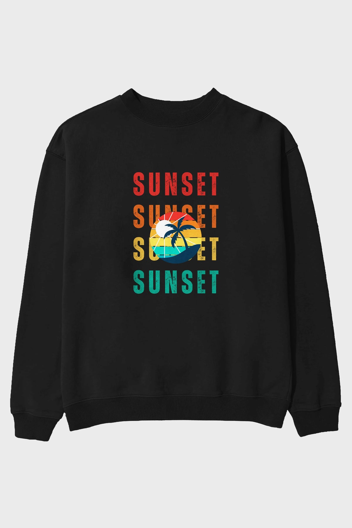 Sunset Yazılı Ön Baskılı Oversize Sweatshirt Erkek Kadın Unisex