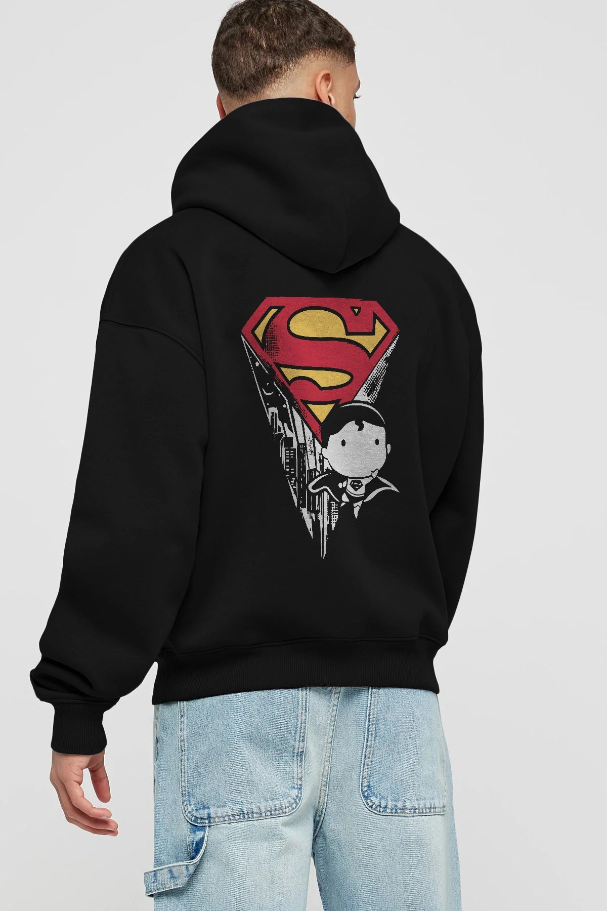 Superman Arka Baskılı Hoodie Oversize Kapüşonlu Sweatshirt Erkek Kadın Unisex