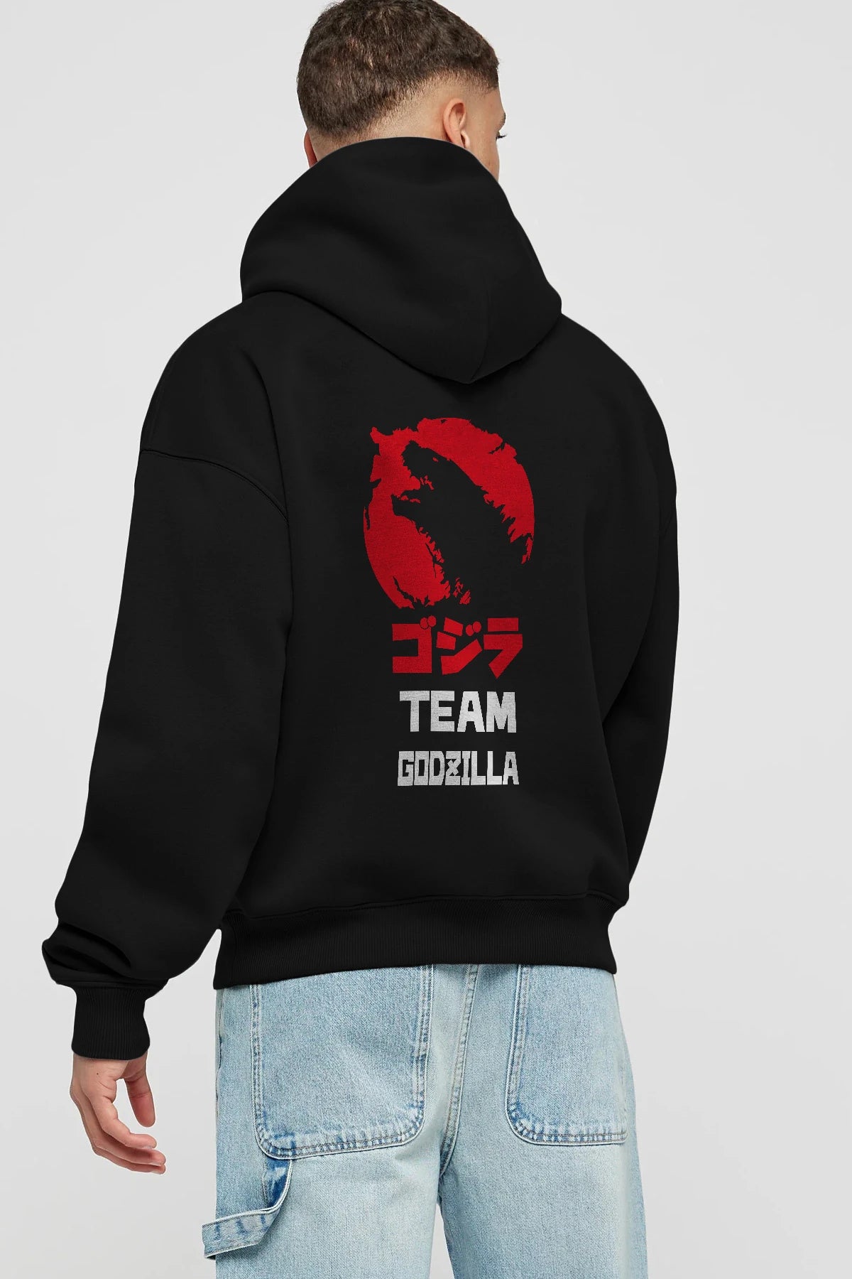 Team Godzilla Arka Baskılı Hoodie Oversize Kapüşonlu Sweatshirt Erkek Kadın Unisex
